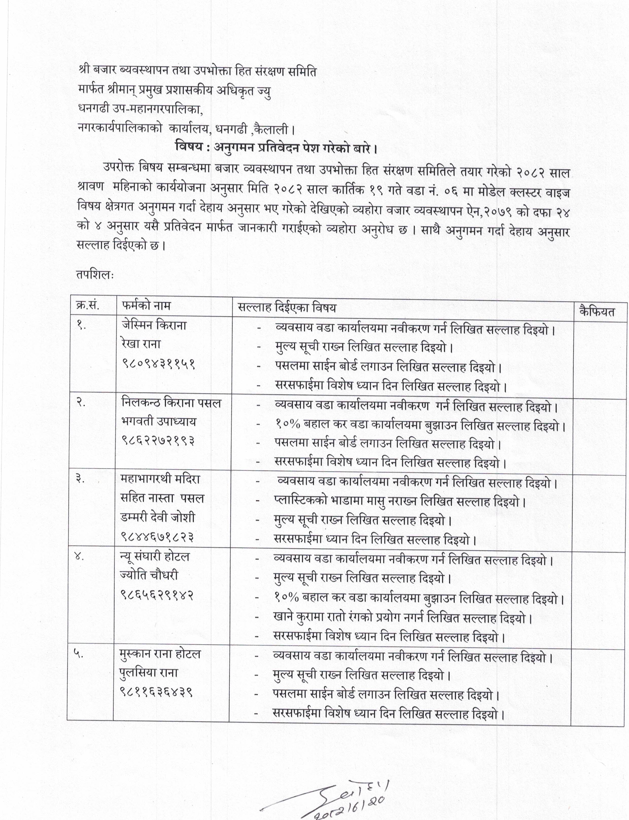 अनुगमन प्रतिवेदन पेश गरेको बारे। [वडा नं ०६]
