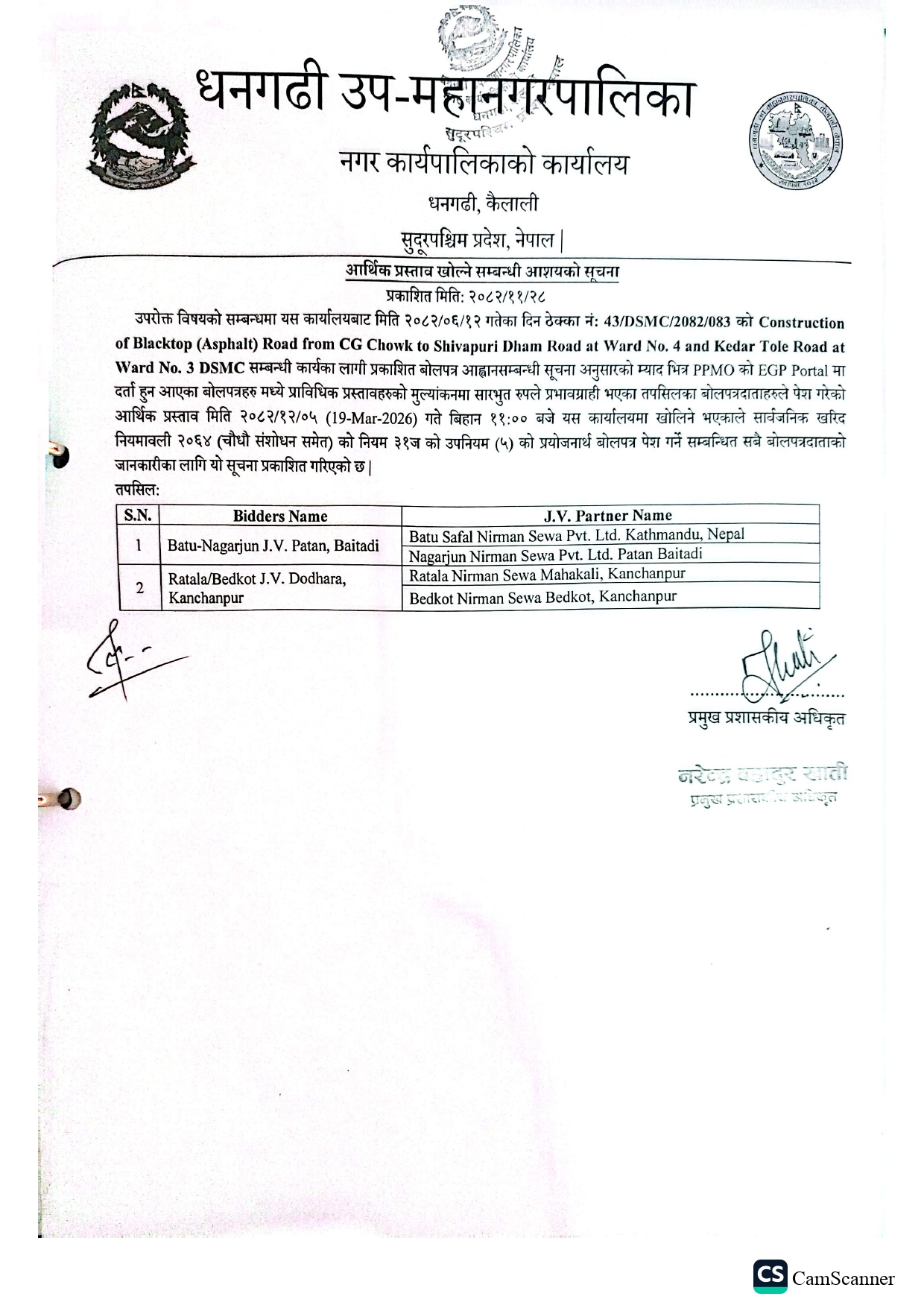 » आर्थिक प्रस्ताव खोल्ने सम्बन्धी आशयको सूचना ।