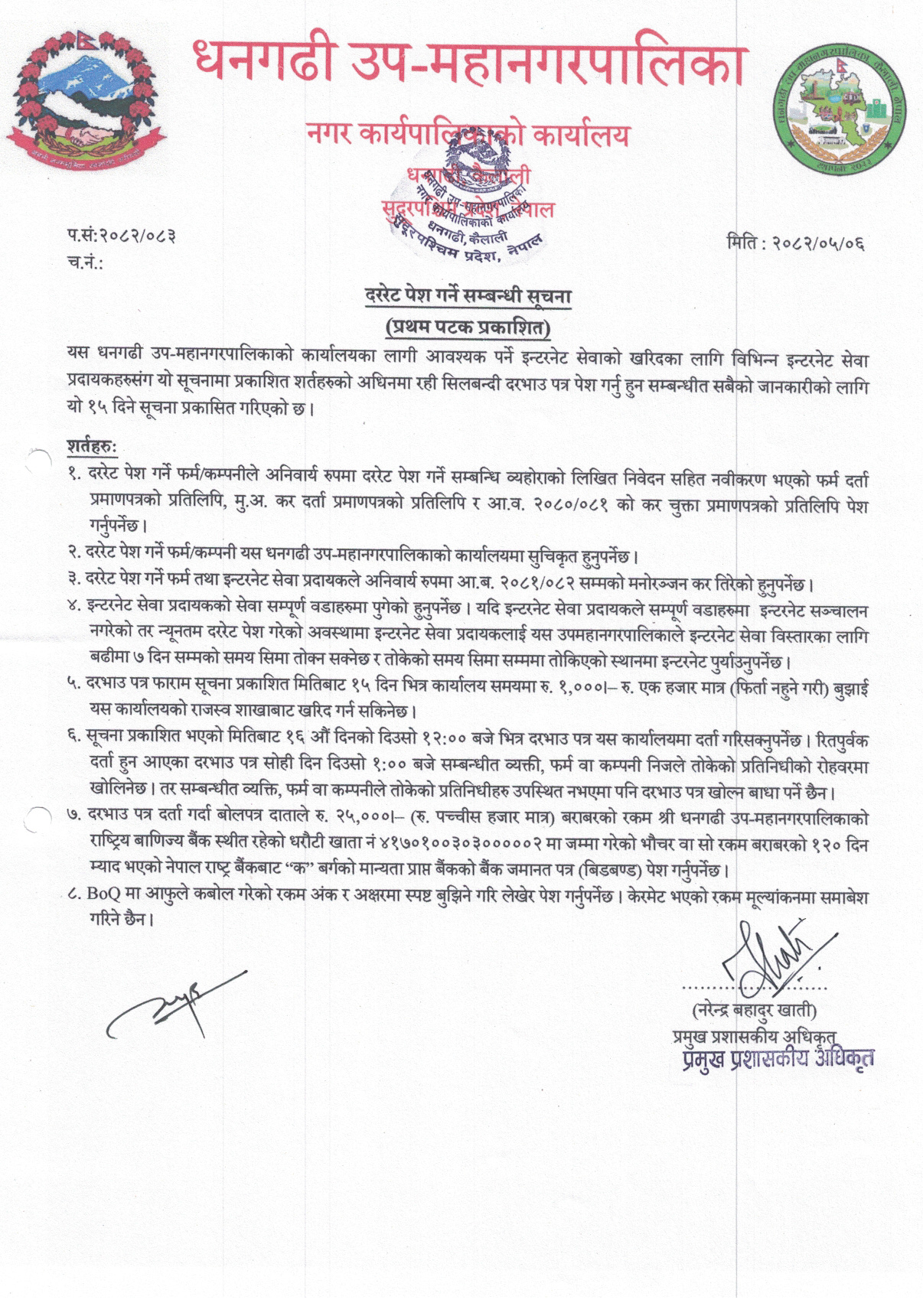 इन्टरनेट सेवा खरिदका लागि दररेट पेश गर्ने सम्बन्धी सूचना