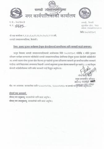 ग्रासरुट फुटबल कार्यक्रममा इच्छुक खेलाडीहरुलाई सहभागिताका लागि जानकारी सम्बन्धमा ।