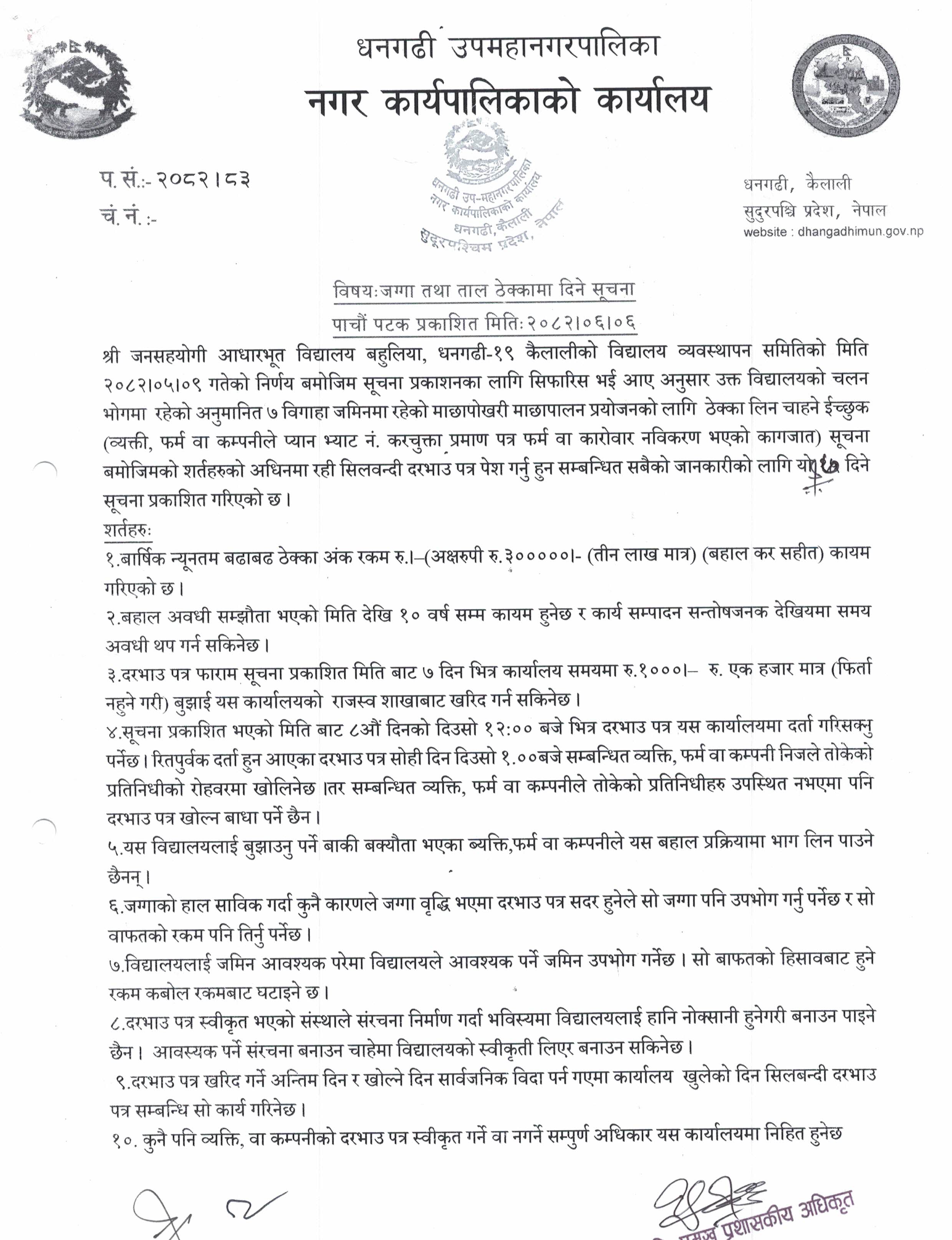 » जग्गा तथा ताल ठेक्कामा दिने सूचना [श्री जनसहयोगी आधारभूत विद्यालय बहुलिया, धनगढी-१९]