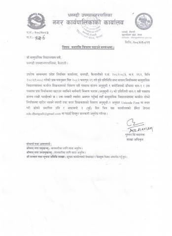 शिक्षा, युवा तथा खेलकुद महाशाखाबाट जारी सूचना
