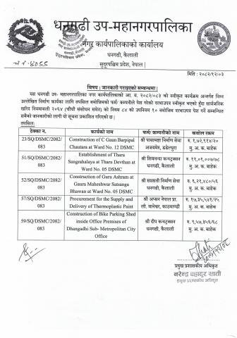 जानकारी गराइएको सम्बन्धमा [ठेक्का नं २३, ५१, ५२, ५७, ५९]