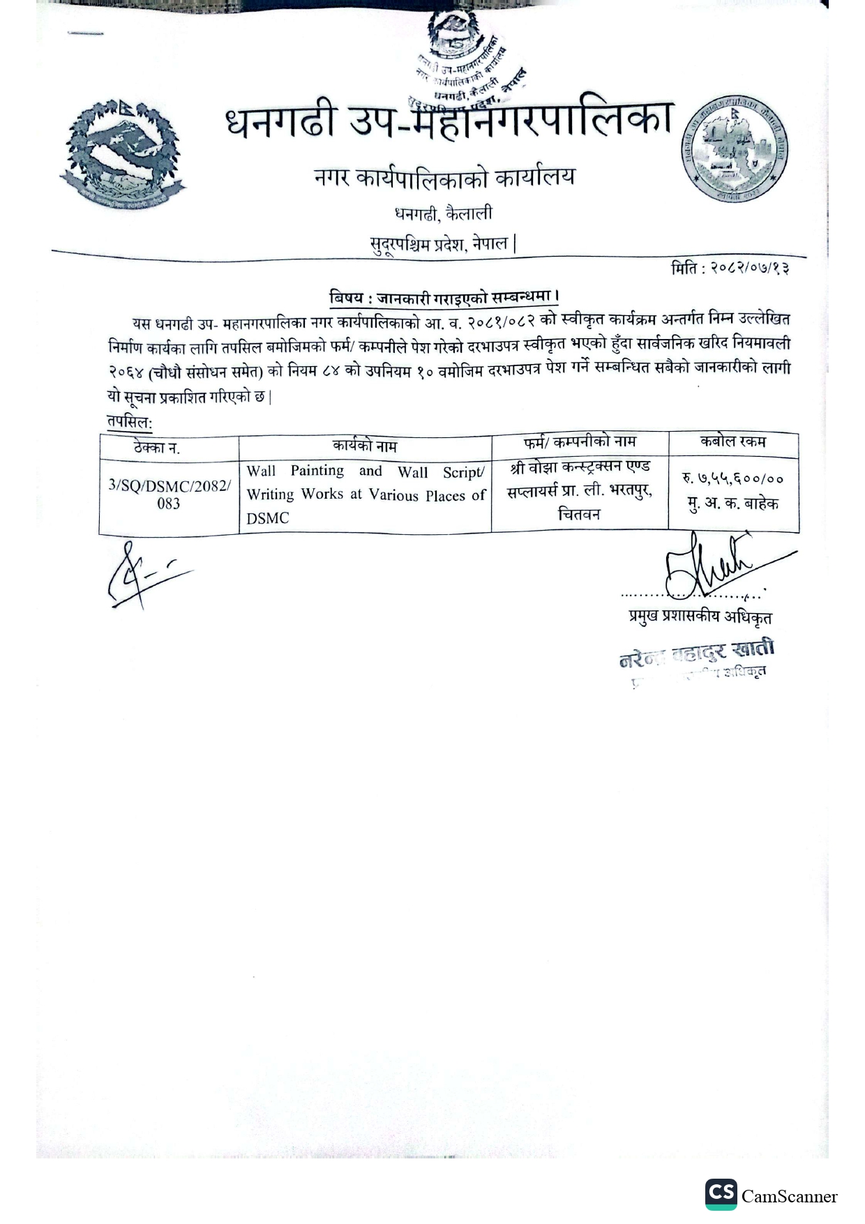 जानकारी गराइएको सम्बन्धमा ।