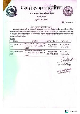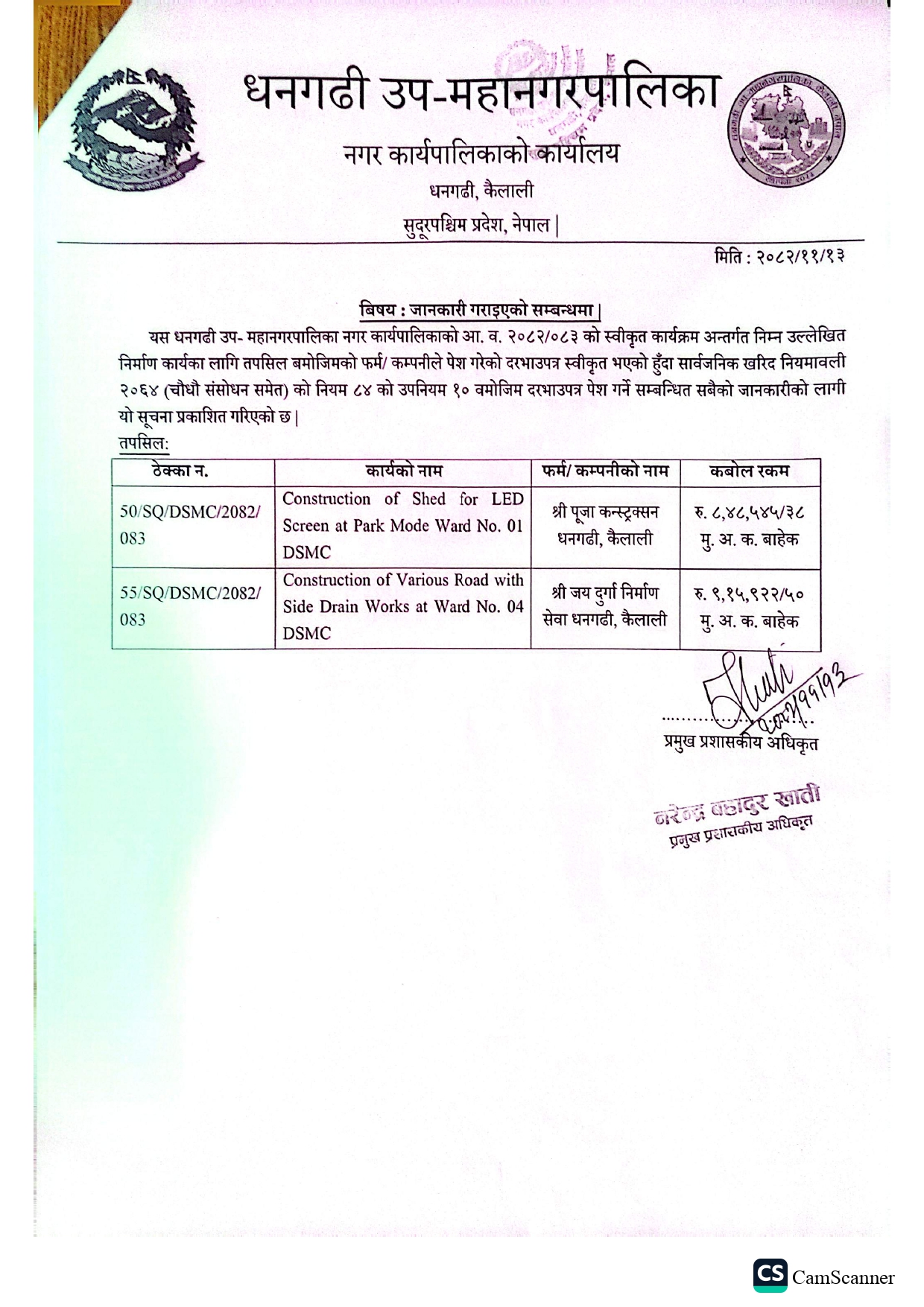 जानकारी गराईएको सम्बन्धमा [ठेक्का नं 50, 55]