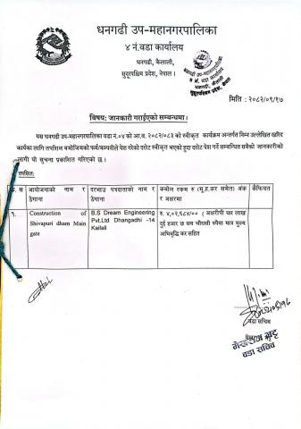 धनगढी उप-महानरपालिका वडा नं- १६ को सामुदायिक विद्यालयमा प्ले स्टेसन जडानको लागि दरभाउ पत्र स्वीकृत गर्ने सम्बन्धी आशयको सूचना