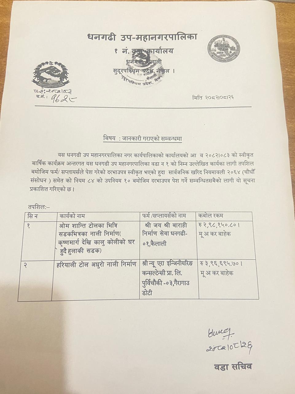 जानकारी गराएको सम्बन्धमा - वडा नं १
