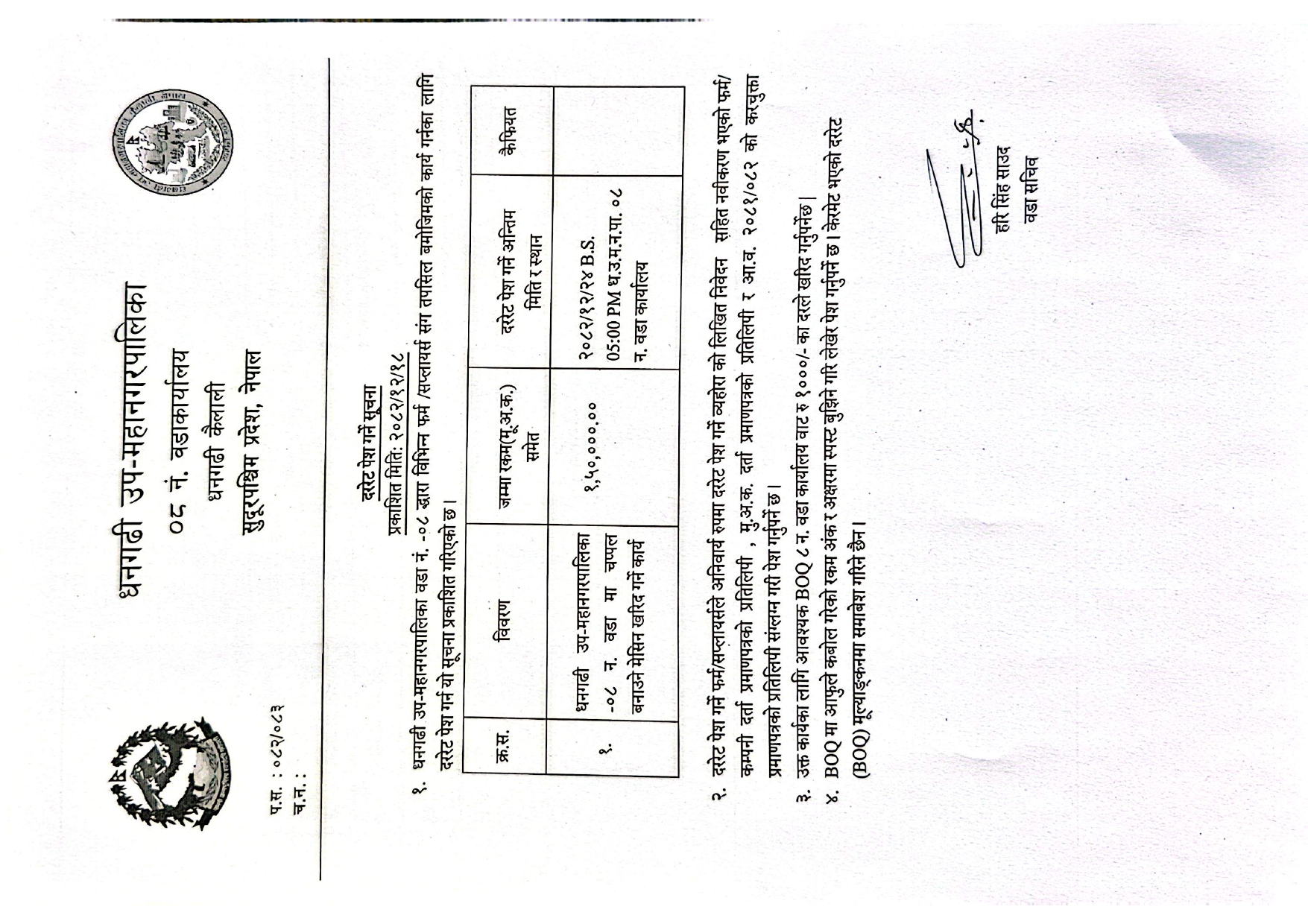बोलपत्रको आशय पत्र सम्बन्धि सूचना (43,60/DSMC/2082/083)