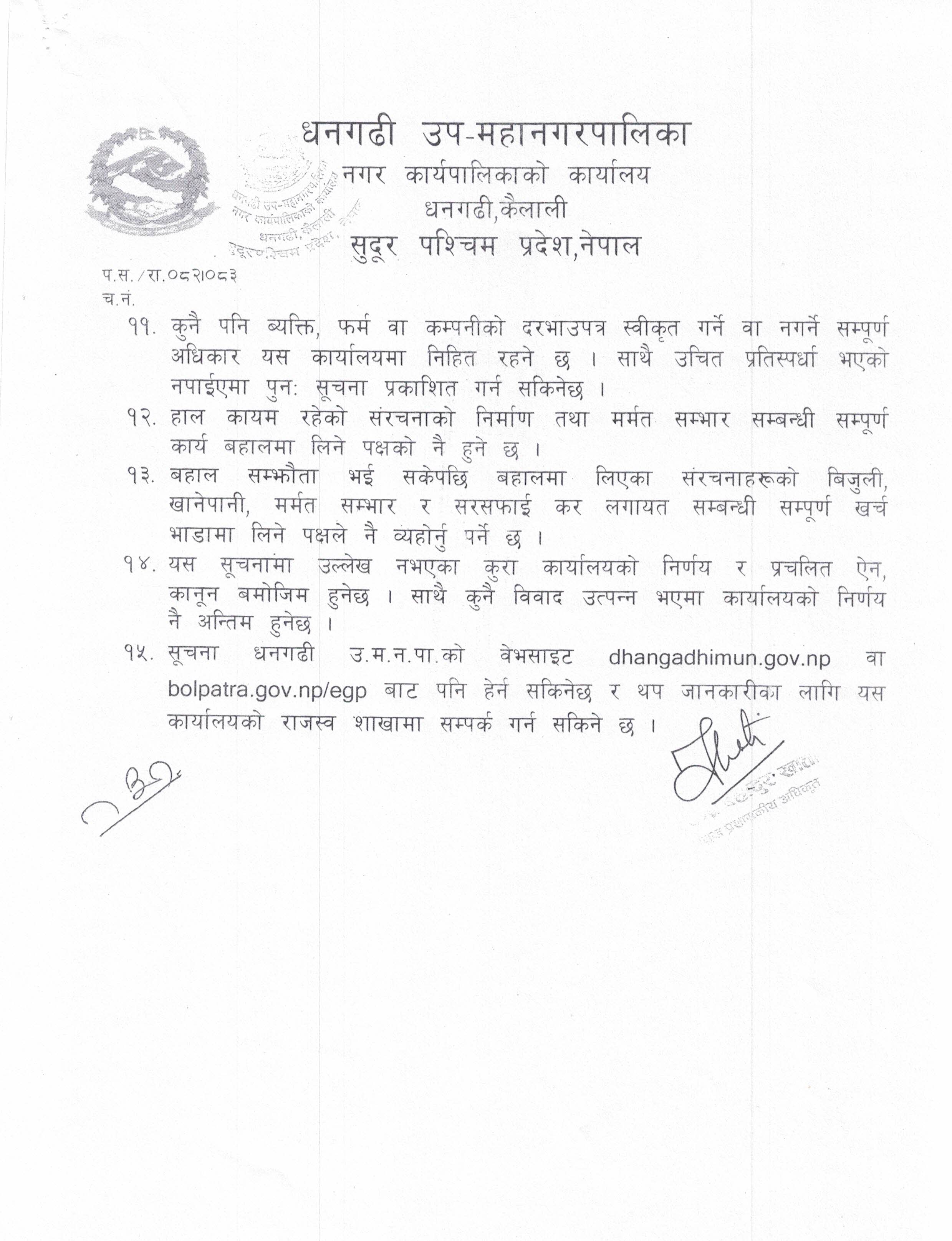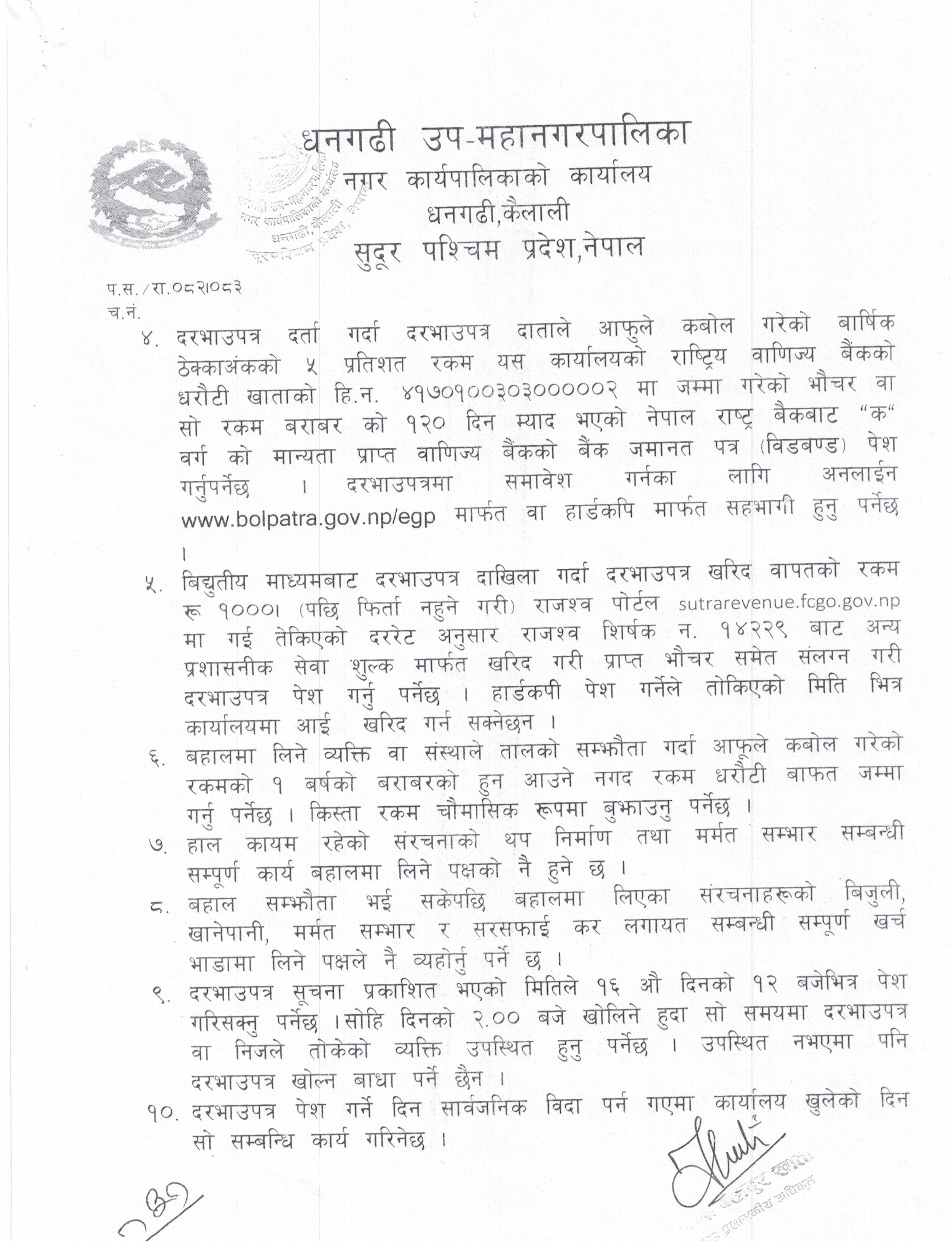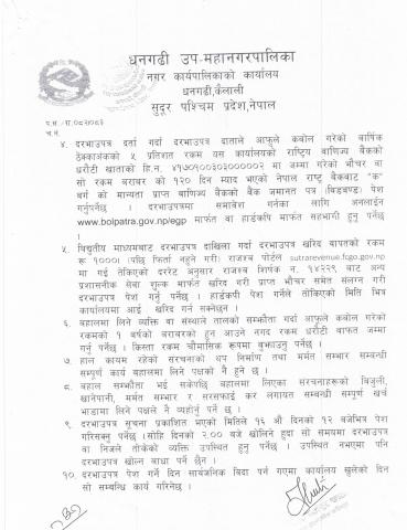 » नेतुवा ताललाई बहालमा लगाउने सम्बन्धी १५ दिने विधुतीय दरभाउपत्र वा हार्डकपी आव्हानको सूचना [ठेक्का नं R5/DSMC/082/083]