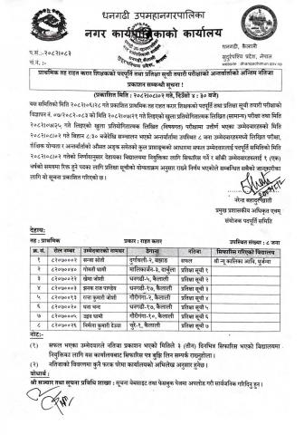 प्राथमिक तह राहत करार शिक्षकको पदपूर्ति तथा प्रतिक्षा सूची तयारी परीक्षाको अन्तर्वार्ताको अन्तिम नतिजा प्रकाशन सम्बन्धी सूचना !