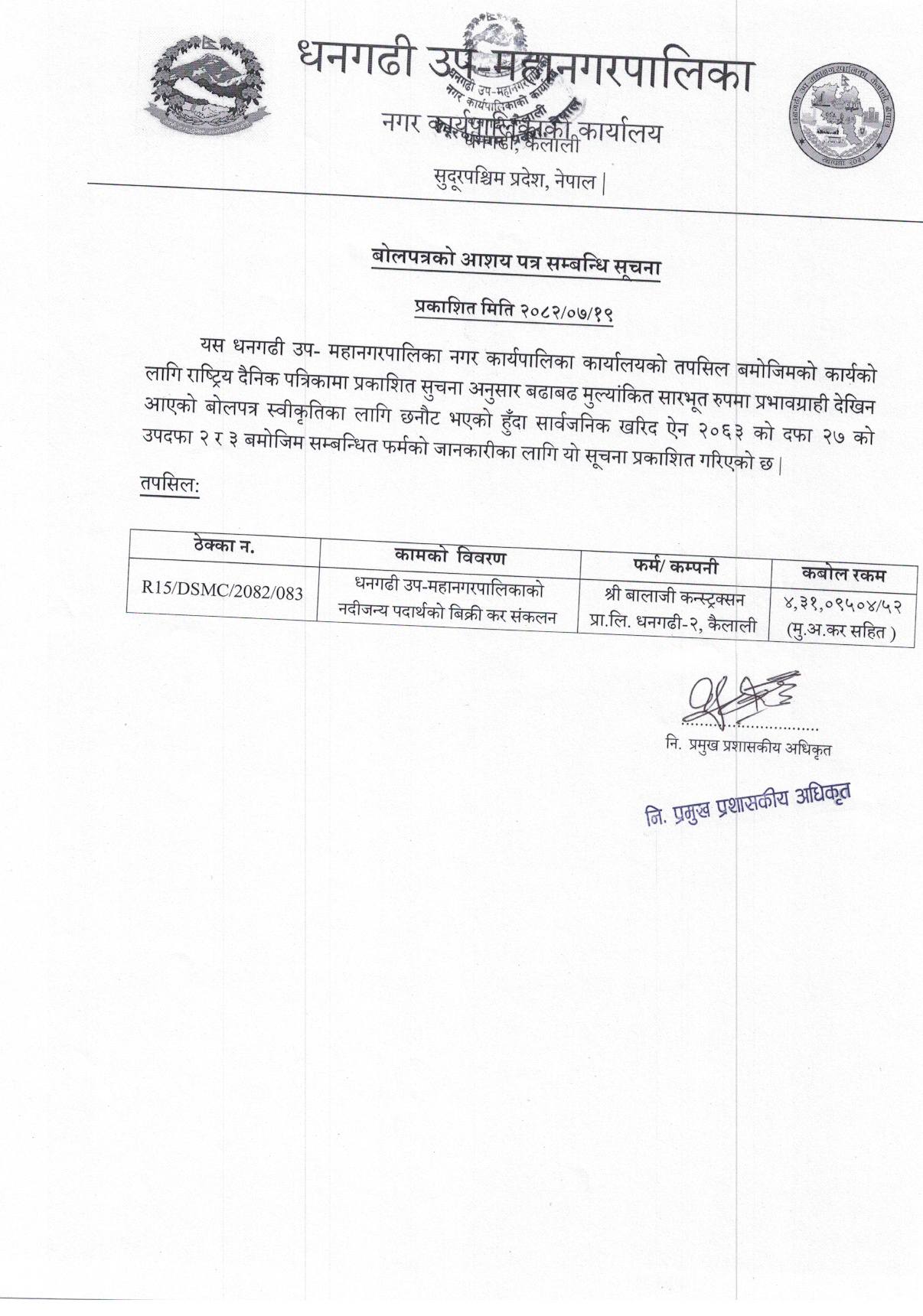 बोलपत्रको आशय पत्र सम्बन्धी सूचना
