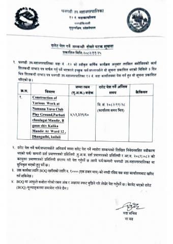 » वडा नं १२ को कार्यालयको दररेट पेश गर्ने सम्बन्धी सूचना [Contruction of Various Work ]