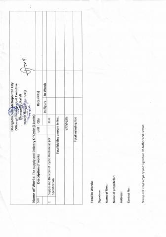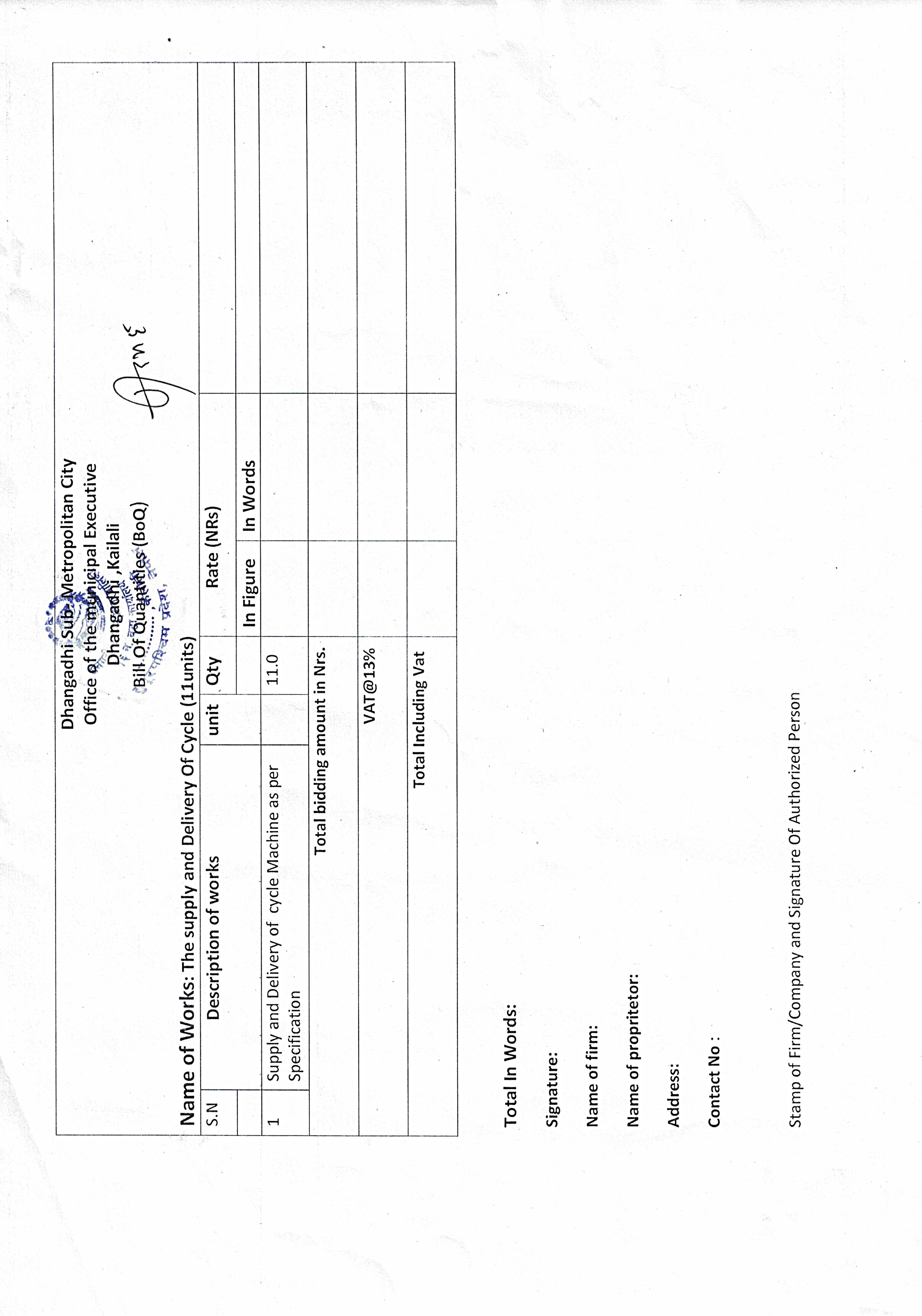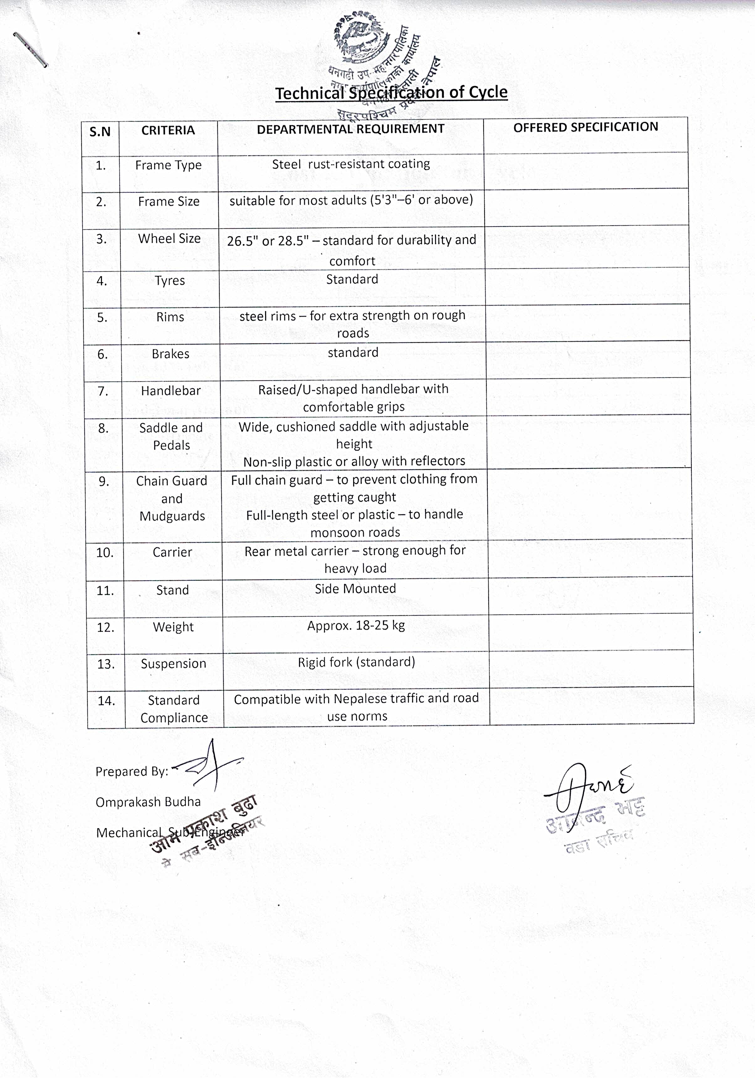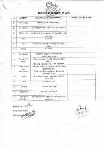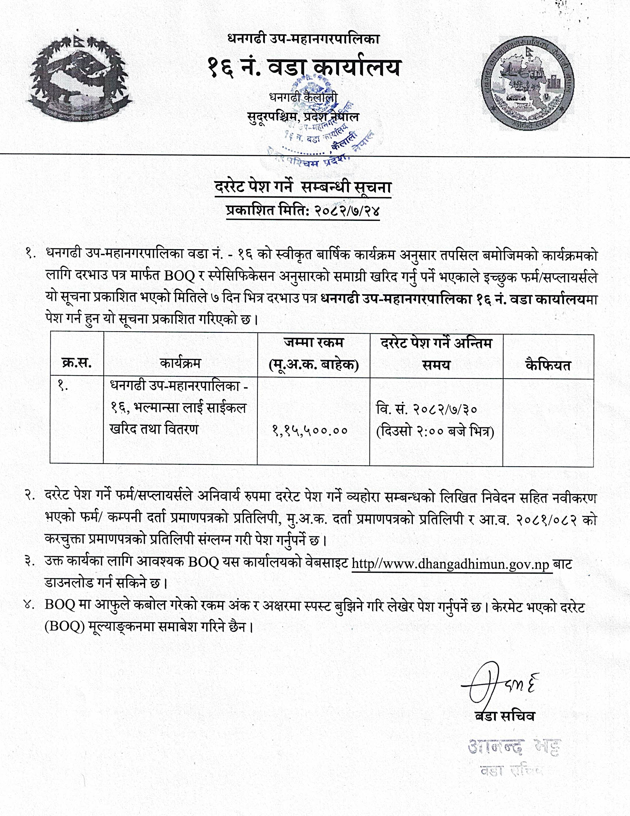 » वडा नं १६ को कार्यालयको दररेट पेश गर्ने सम्बन्धी सूचना [धनगढी उपमहानगरपालिका - १६, भल्मान्सालाई साइकल खरिद तथा वितरण]
