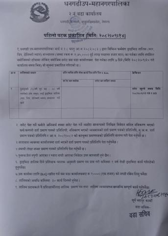 धनगढी उपमहानगरपालिकाको स्वामित्वमा रहेको कोठाहरुलाई बहालमा दिने सम्बन्धी सिलबन्दी दरभाउ पत्र आव्हानको १५ दिने सूचना