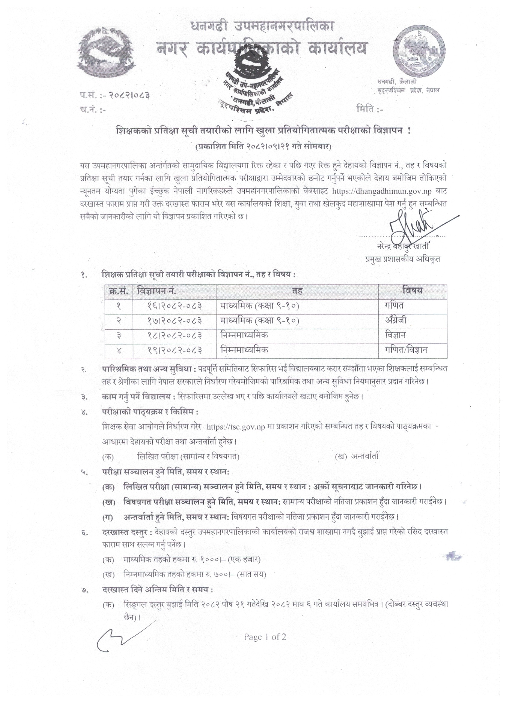 शिक्षकको प्रतिक्षा सूची तयारीको लागि खुला प्रतियोगितात्मक परीक्षाको विज्ञापन ! (प्रकाशित मिति २०८२।०९।२१ गते सोमबार)
