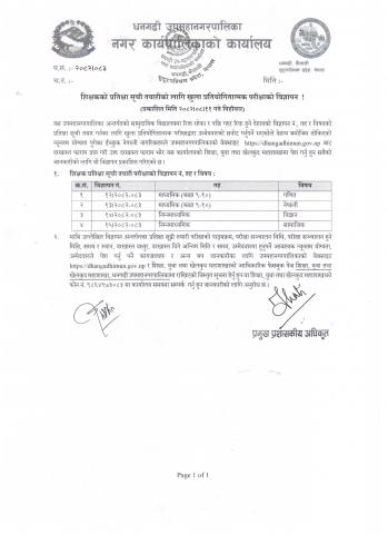 शिक्षकको प्रतिक्षा सूची तयारीको लागि खुला प्रतियोगितात्मक परीक्षाको विज्ञापन !