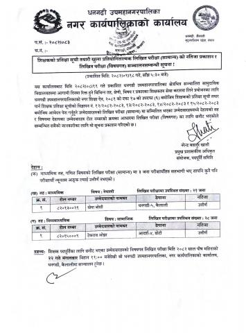 शिक्षकको प्रतिक्षा सूची तयारी खुला प्रतियोगितात्मक लिखित परीक्षा (सामान्य) को नतिजा प्रकाशन र लिखित परीक्षा (विषयगत) सञ्चालनसम्बन्धी सूचना !