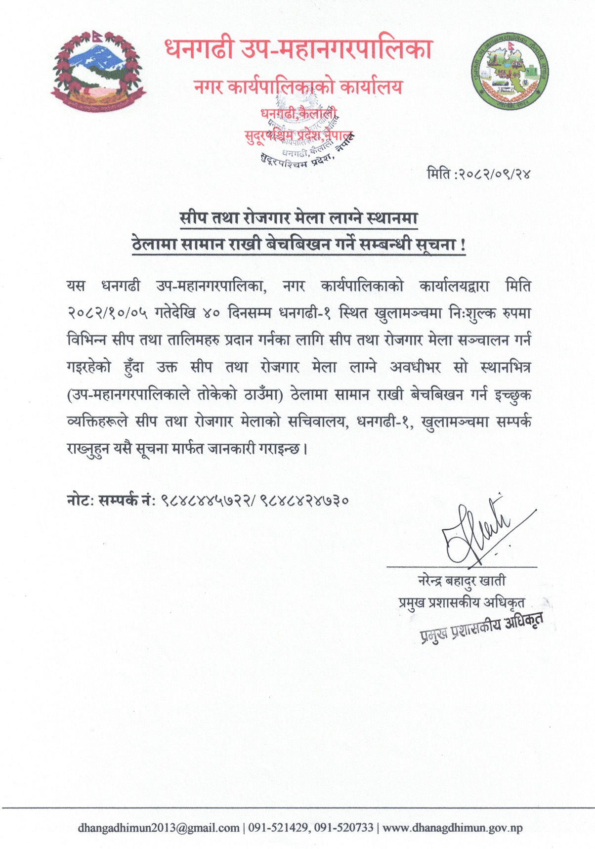 info@dhangadhimun.gov.np, dhangadhimun2013@gmail.com