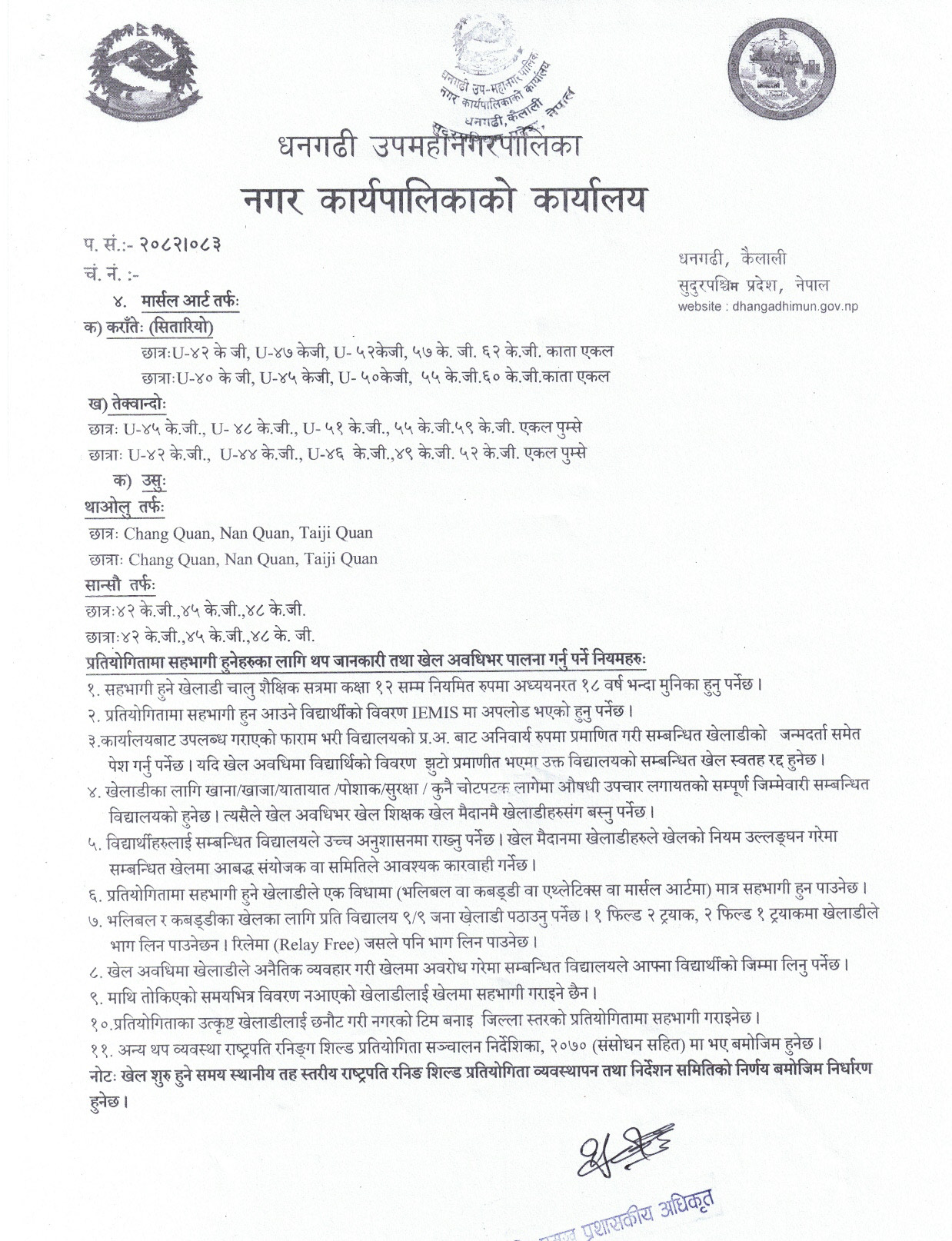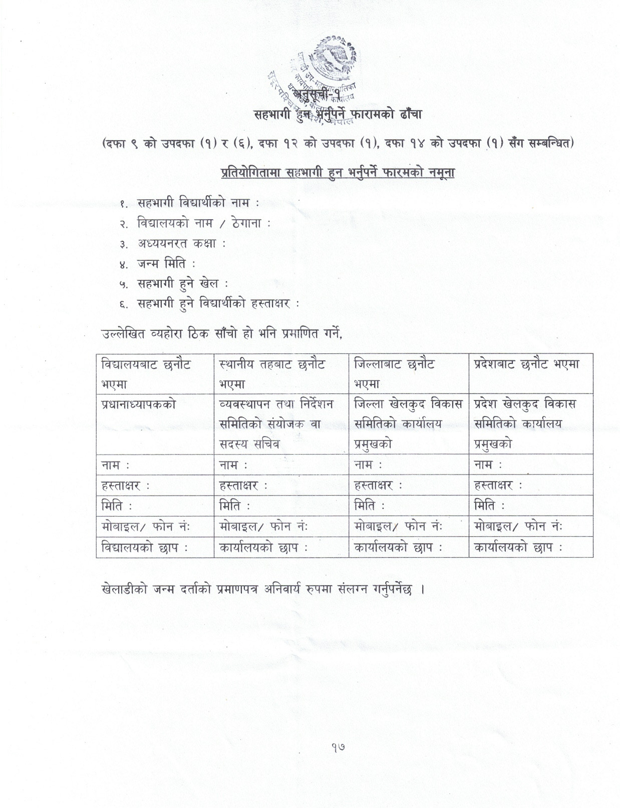 १६ औं राष्ट्रपति रनिङ शिल्ठ प्रतियोगिताका लागि खेलाडीको विवरण पठाउने बारे