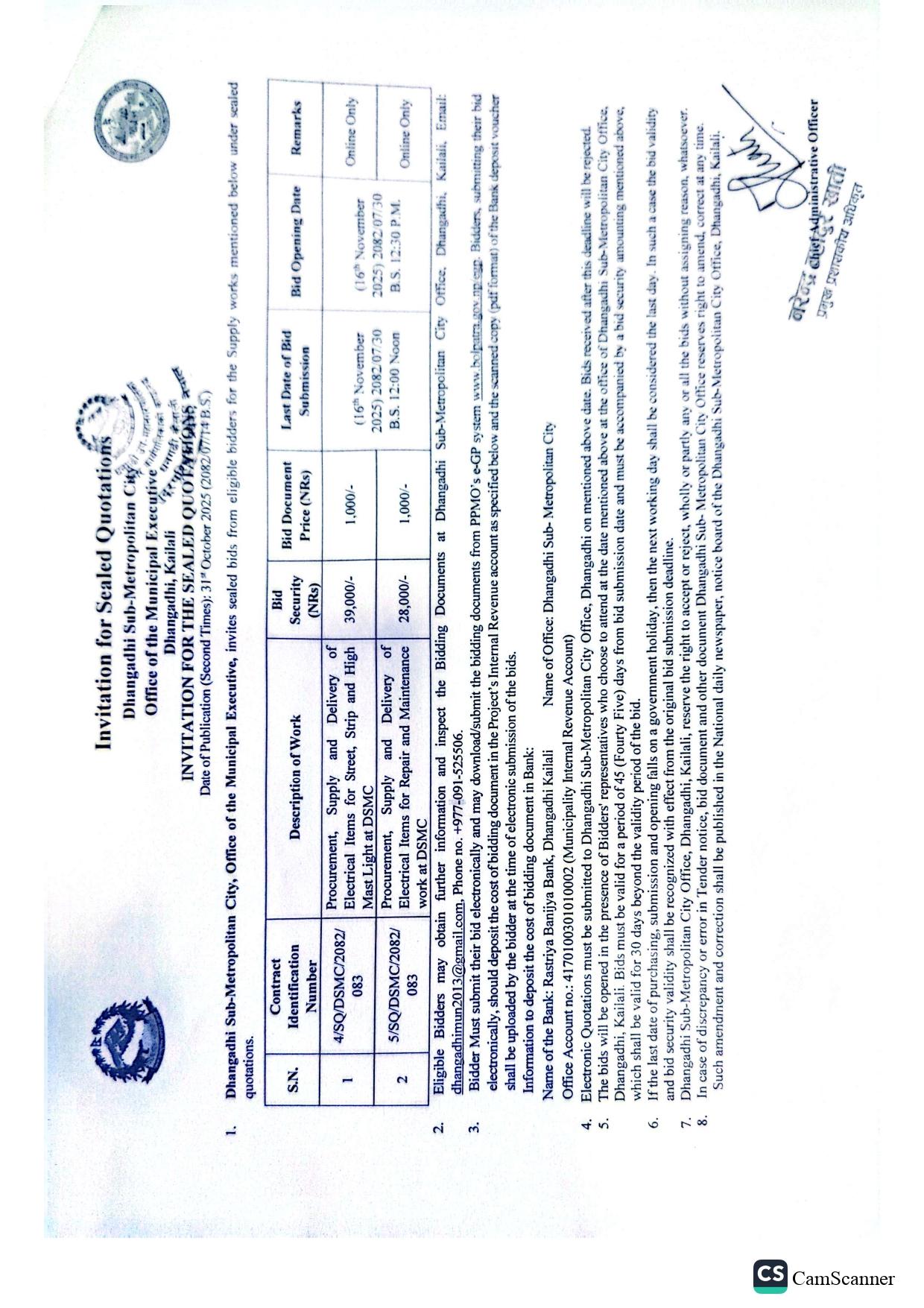 Inivitation for the Sealed Quotations [Contract id 4-5]