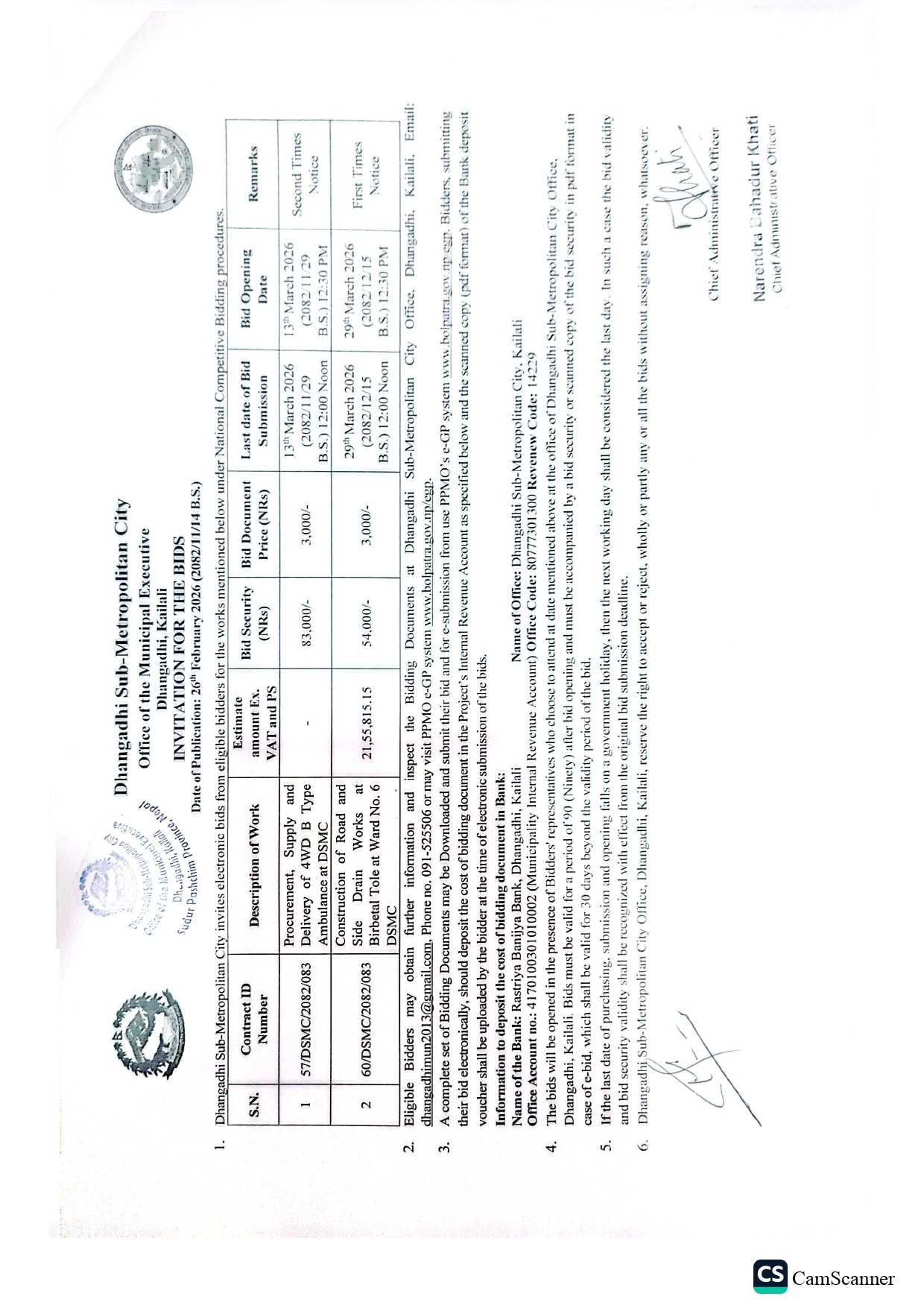 Invitation for the bids [Contract Id 57, 60]