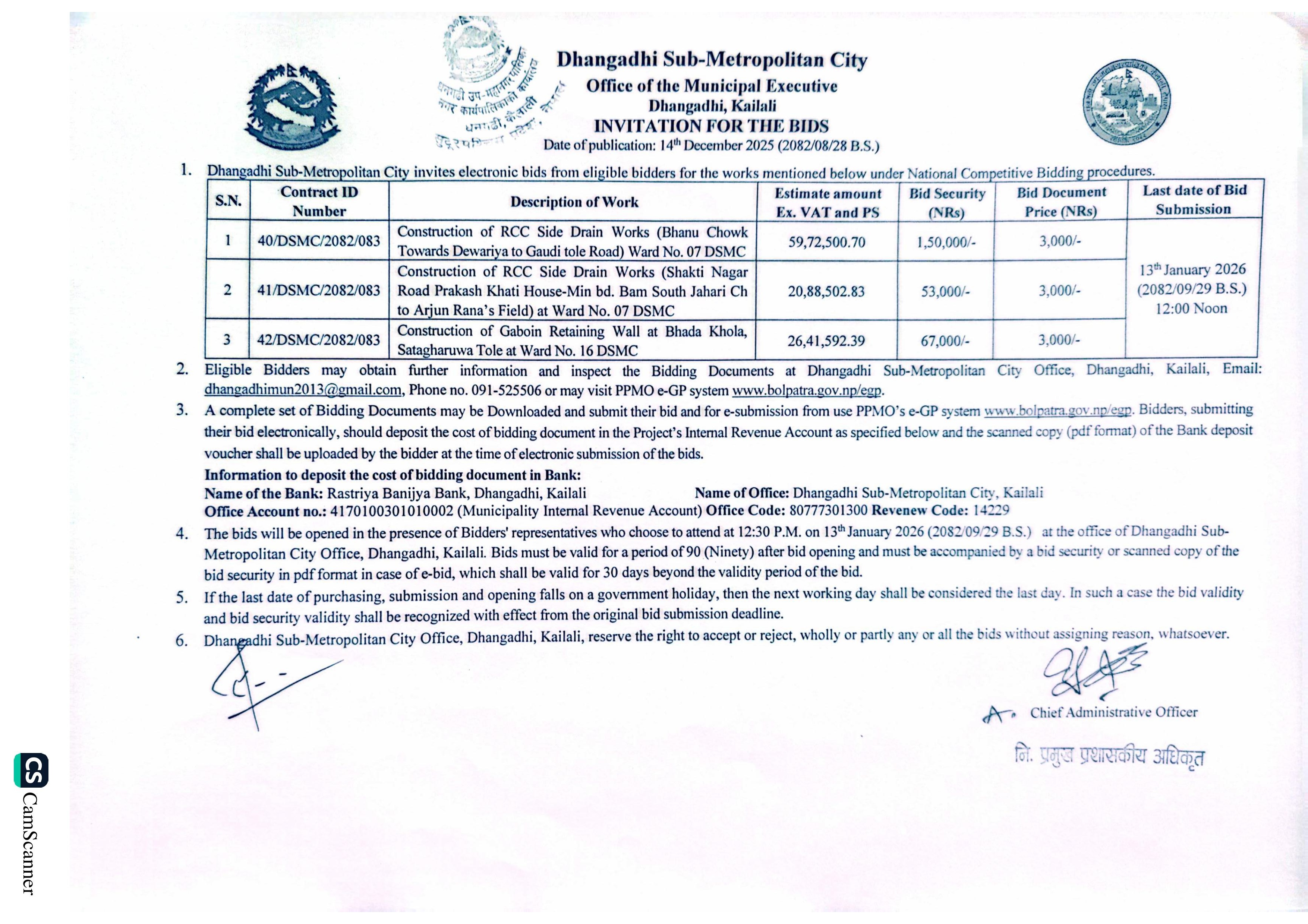Invitation for the Bids (Various Work)