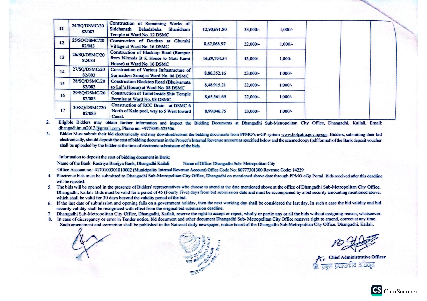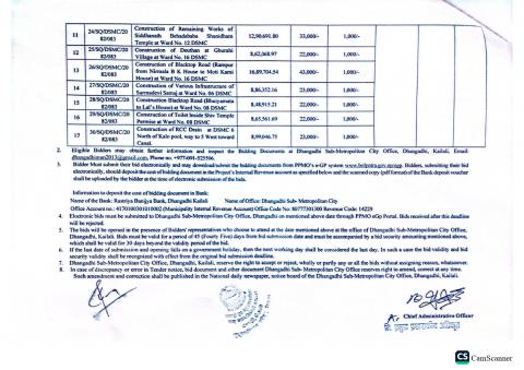 वडा नं १२ को दररेट पेश गर्ने सम्बन्धी सूचना[Construction of various works]