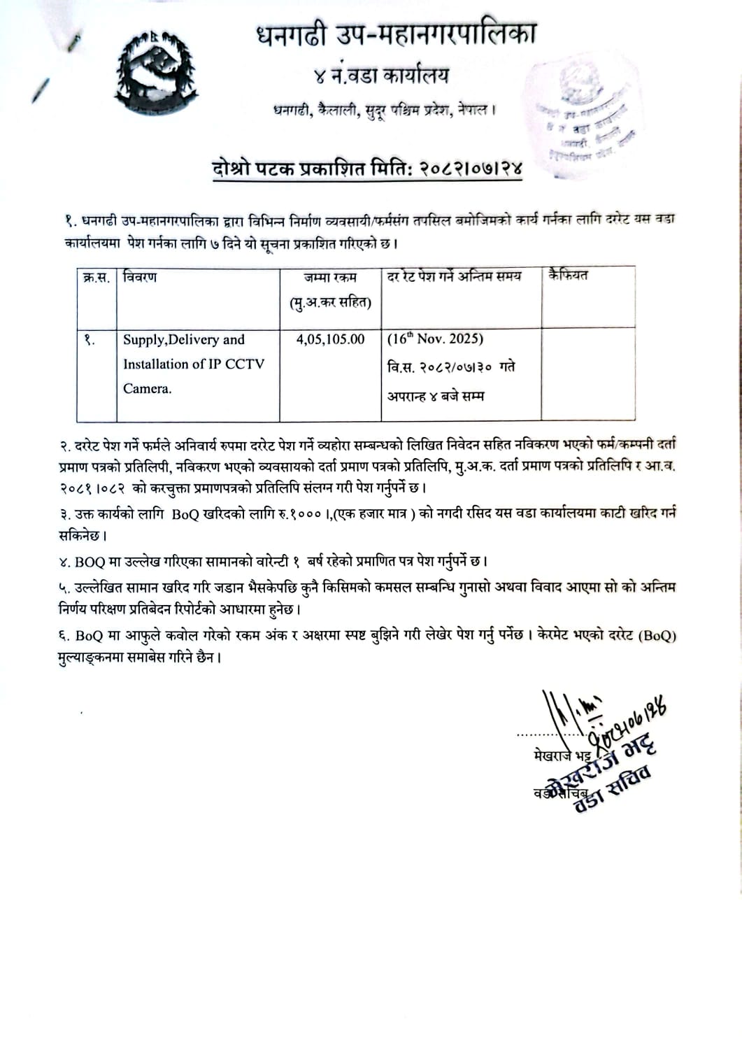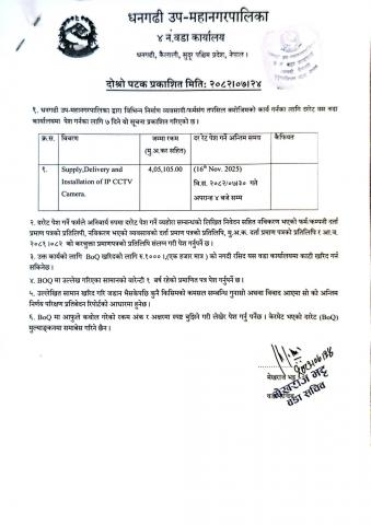 Supply, Delivery and Installation of IP CCTV Camera [वडा नं ४, दोश्रो पटक प्रकाशित]