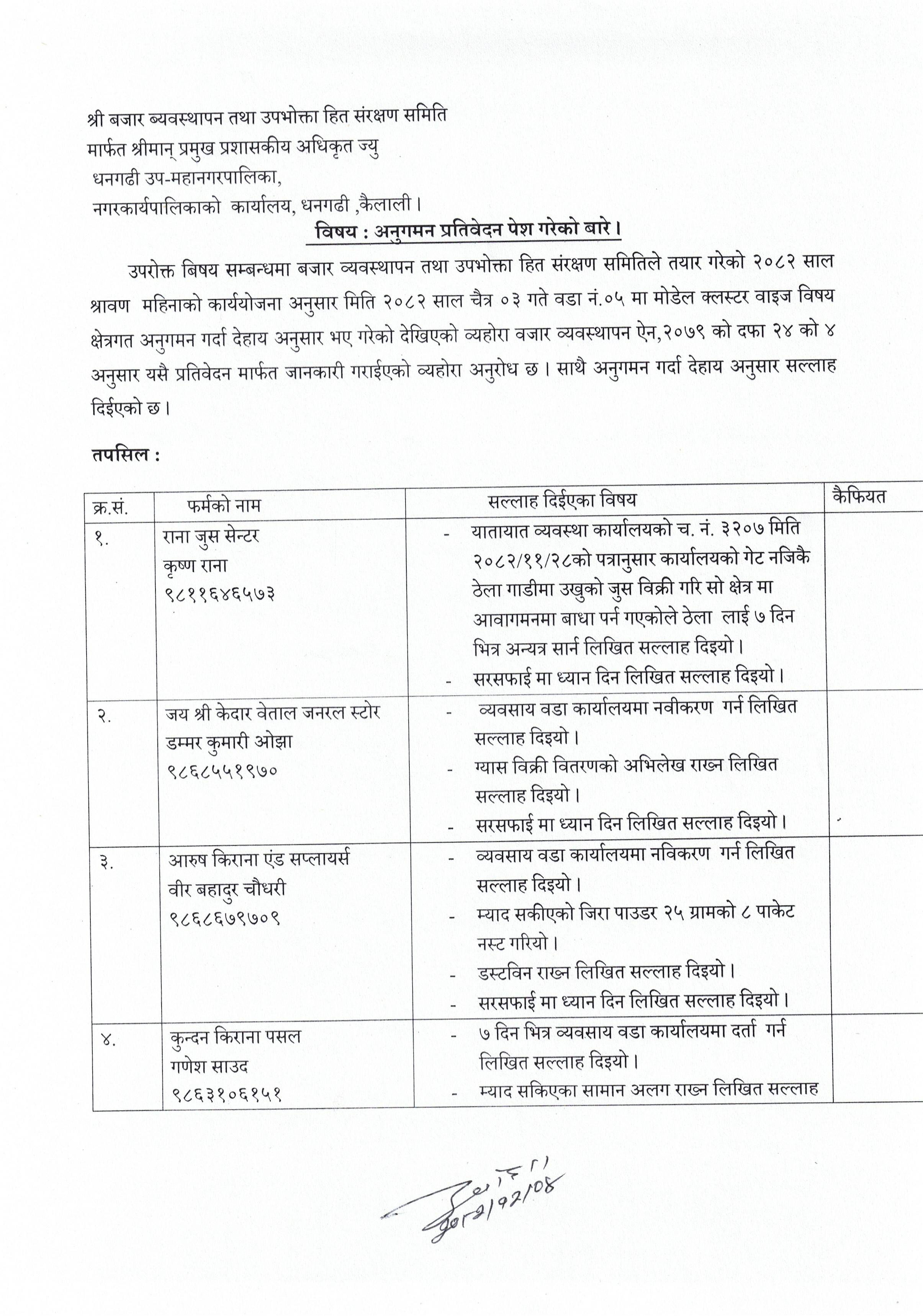अनुगमन प्रतिवेदन पेश गरेको बारे [वडा नं ०५]