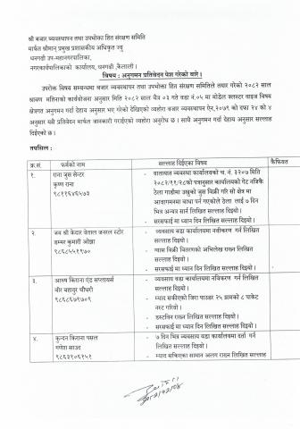 जानकारी गराइएको सम्बन्धमा [ठेक्का नं २३, ५१, ५२, ५७, ५९]