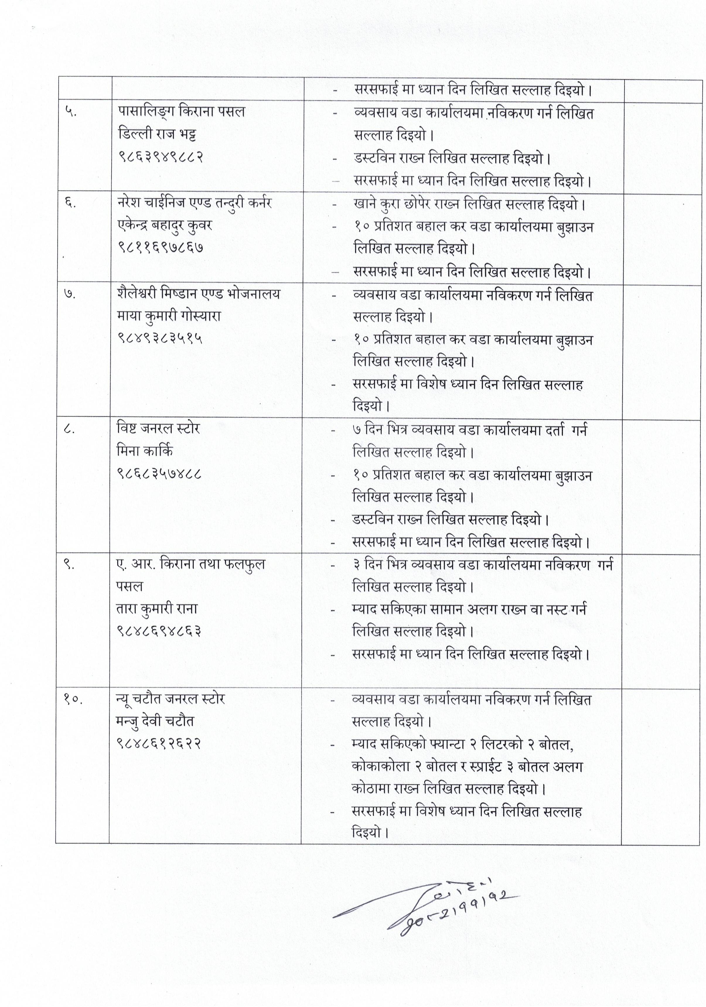 नगर कार्यपालिकाका निर्णयहरु