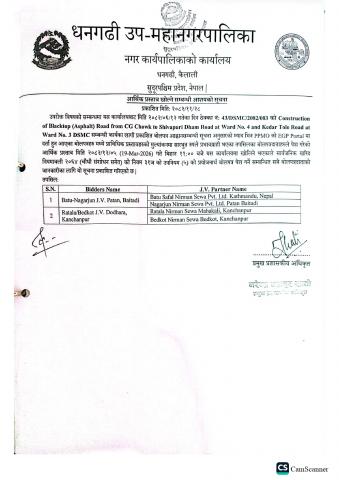 जानकारी गराइएको सम्बन्धमा [ठेक्का नं २३, ५१, ५२, ५७, ५९]