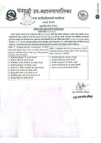धनगढी उपमहानगरपालिका ०३ स्थित त्रिभुवन सामुदायिक विद्यालयको जिर्ण भवन भत्काउने र scrap बिक्री कार्यको लागि ७ (सात) दिने दरभाउपत्र सम्बन्धी सूचना ।