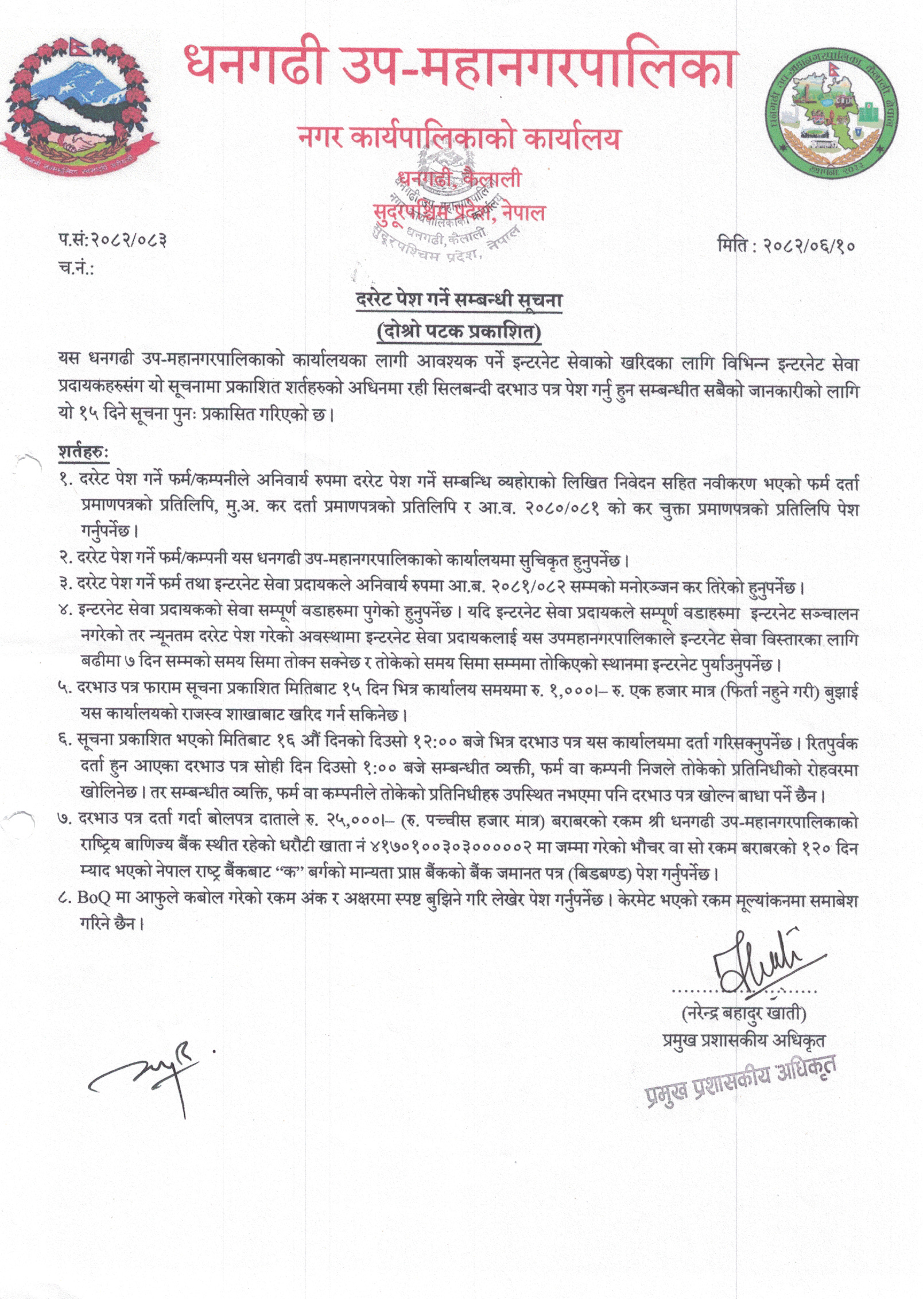 दररेट पेश गर्ने सम्बन्धी सूचना (Procurement for the Supply and Delivery of Register and Form/Format)