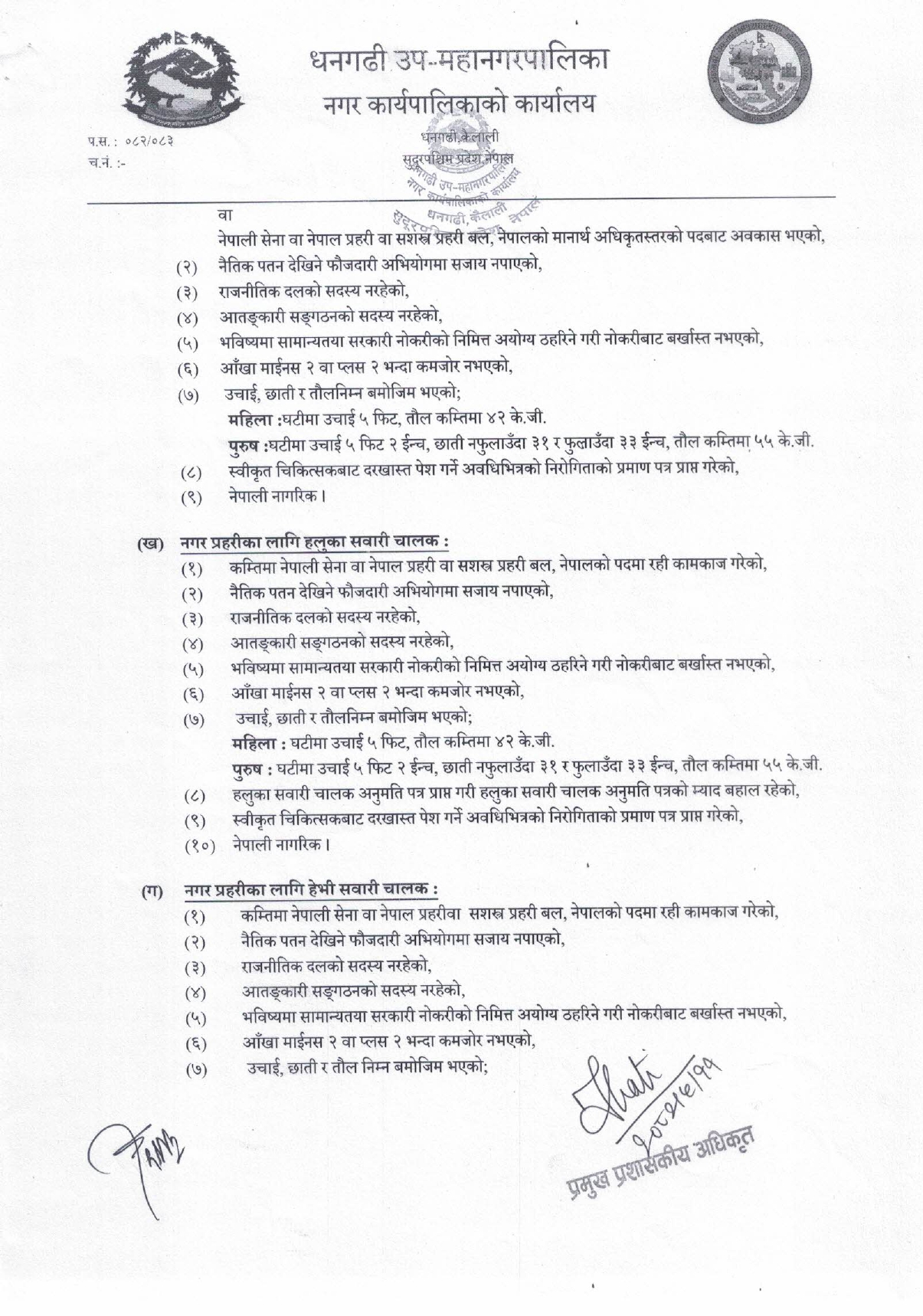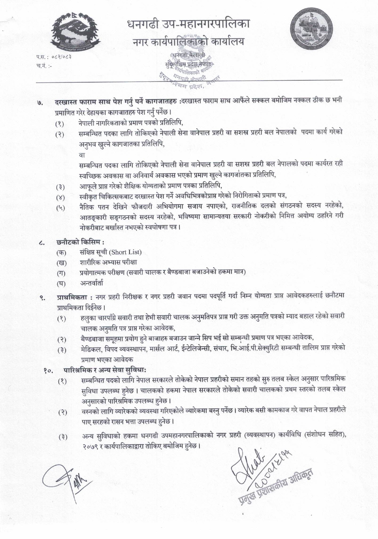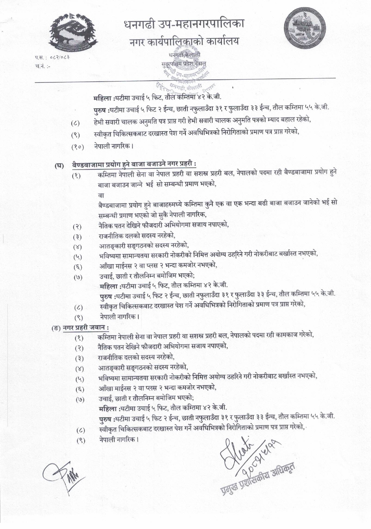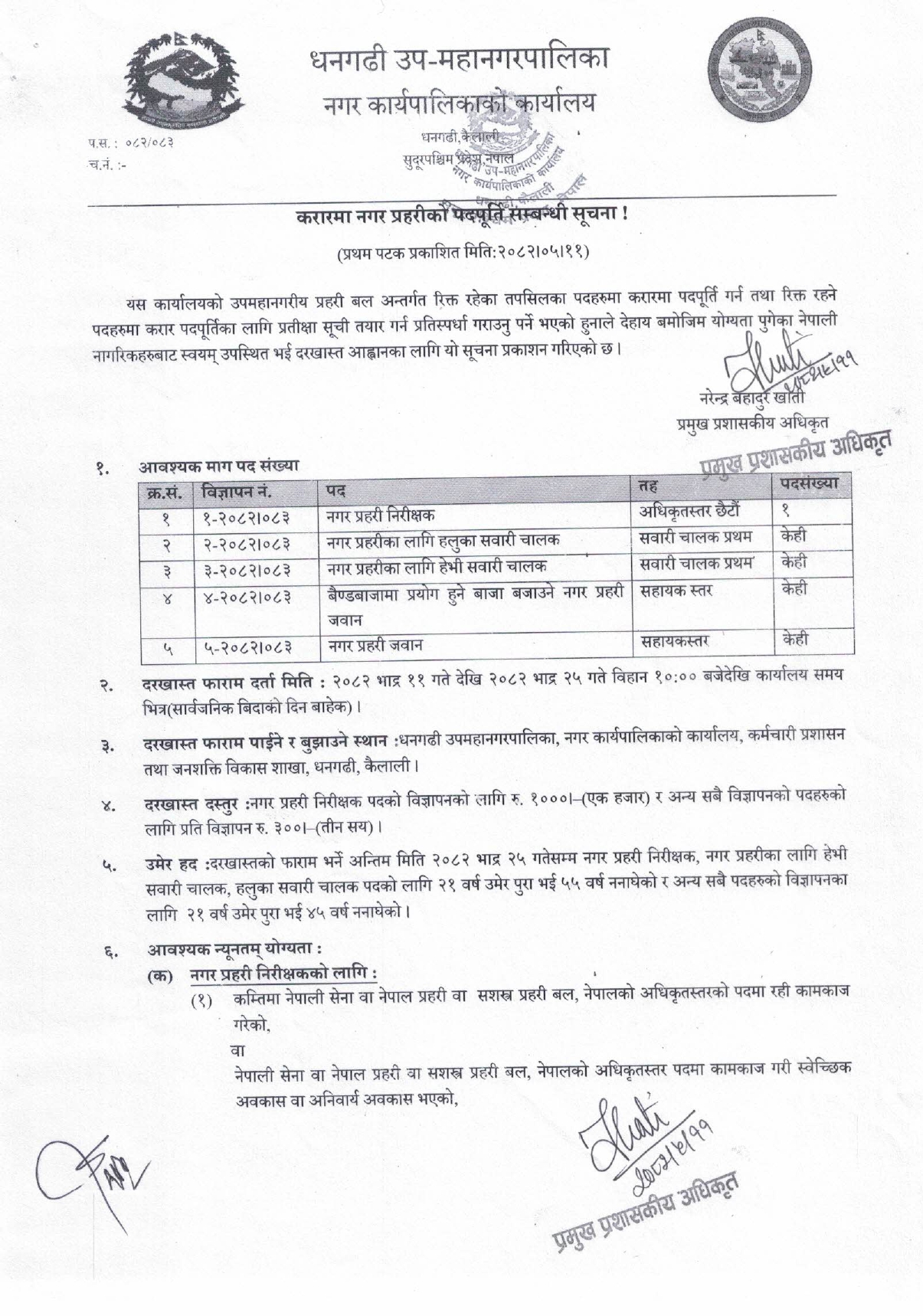 करार सेवामा नगर प्रहरी पदपूर्ति गर्ने सम्बन्धी सूचना