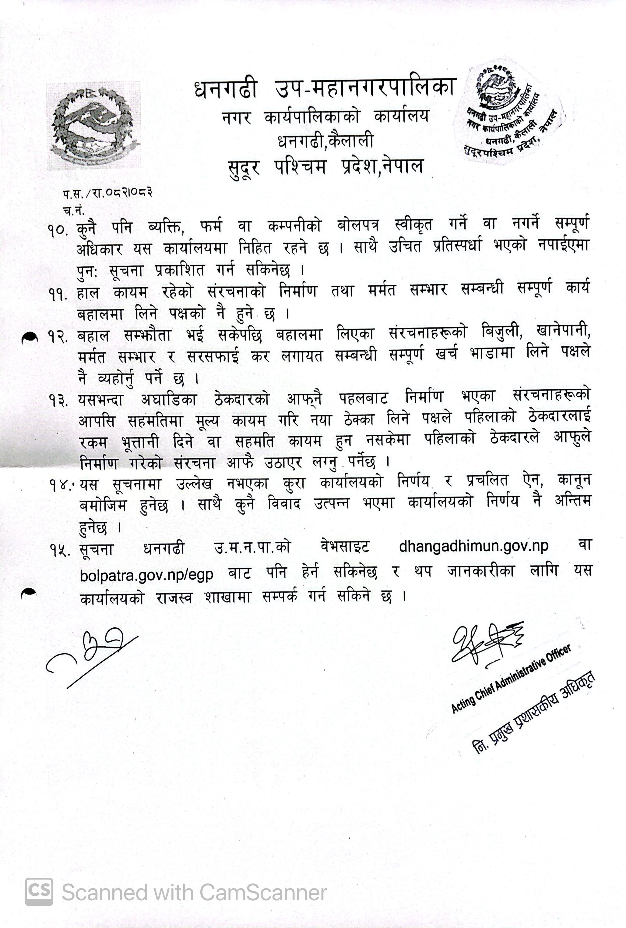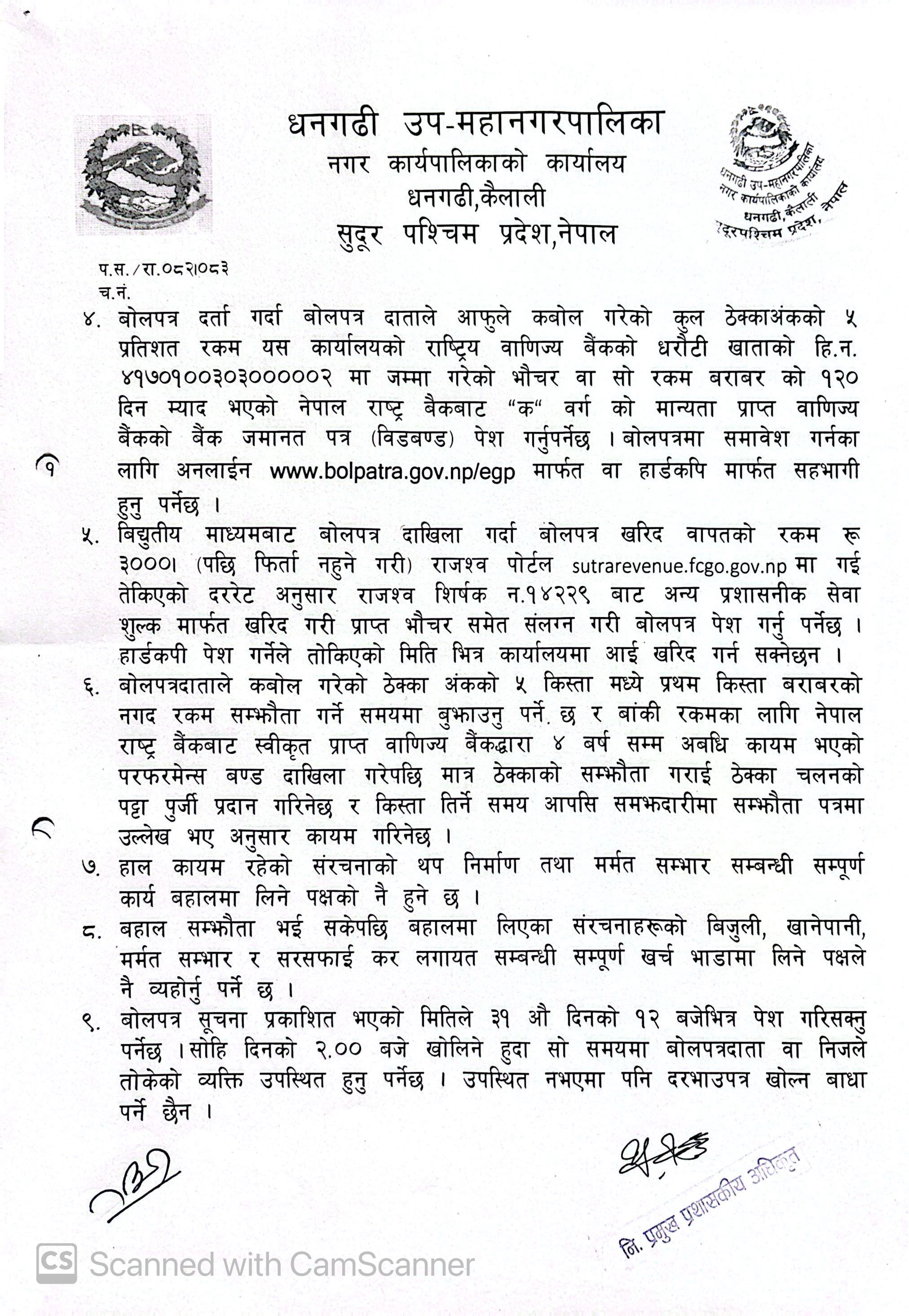 » चौफेरी ताललाई बहालमा लगाउने सम्बन्धी विद्युतीय दरभाउ वा हार्डकपी आव्हानको सूचना । [प्रथम पटक प्रकाशित]