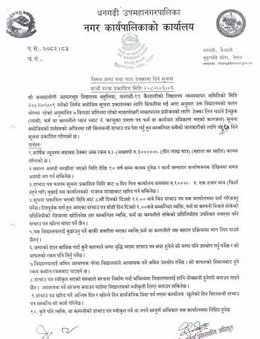 » जग्गा तथा ताल ठेक्कामा दिने सूचना [श्री जनसहयोगी आधारभूत विद्यालय बहुलिया, धनगढी-१९]