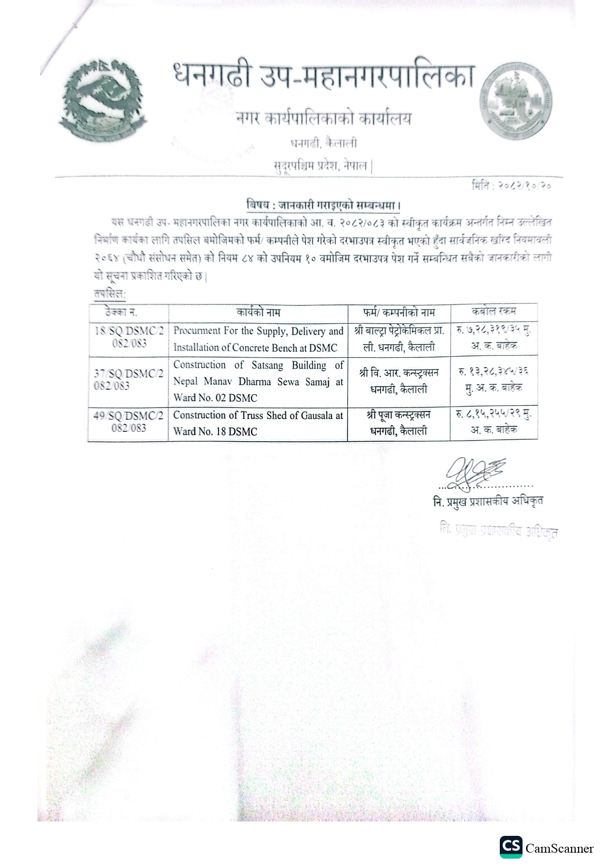 » जानकारी गराइएको सम्बन्धमा [ठेक्का नं 18, 37, 49]