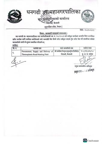 » जानकारी गराइएको सम्बन्धमा [Procurement , Supply and Delivery of thermoplastic Road Marking Paint]