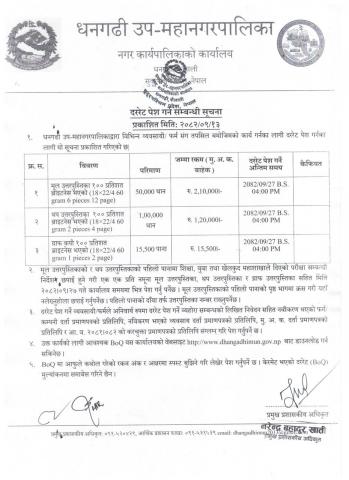 वडा नं १२ को दररेट पेश गर्ने सम्बन्धी सूचना[Maintenance of various works]
