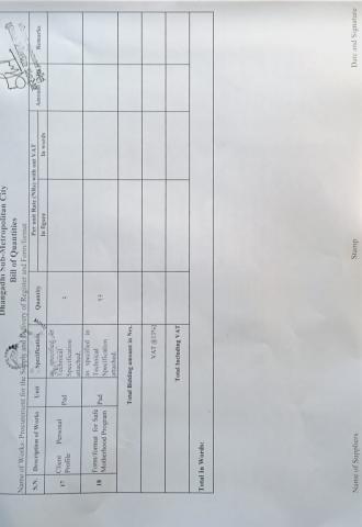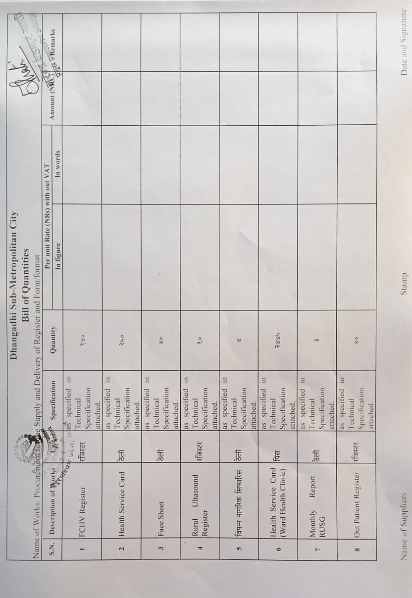दररेट पेश गर्ने सम्बन्धी सूचना (Procurement for the Supply and Delivery of Register and Form/Format)