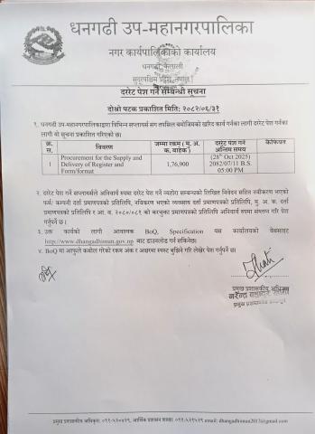 » दररेट पेश गर्ने सम्बन्धी सूचना (Procurement for the Supply and Delivery of Register and Form/Format)