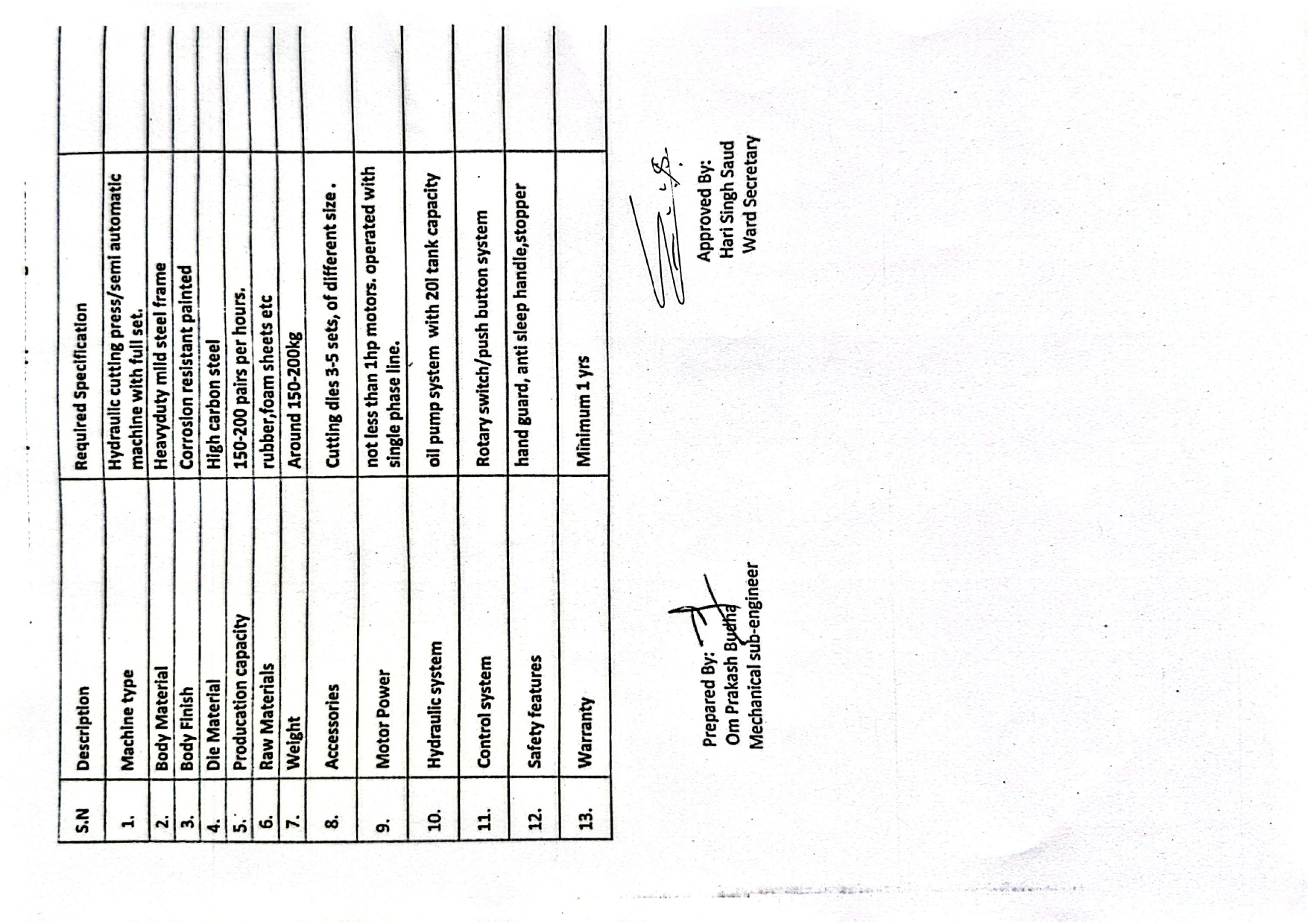 दररेट पेश गर्ने सूचना [ वडा नं ०८ मा चप्पल बनाउने मेसिन खरिद गर्ने काम]