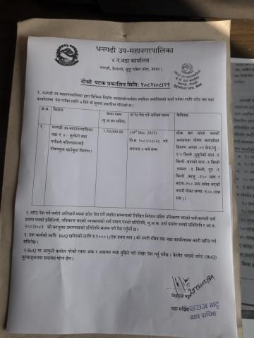 धनगढी उप-महानगरपालिका वडा नं ४ सुत्केरी तथा गर्भवती महिलाहरुलाई पोषणयुक्त खानेकुरा वितरण सम्बन्धीका लागि दररेट आव्हान सम्बन्धी दोश्रो पटक प्रकाशित सूचना