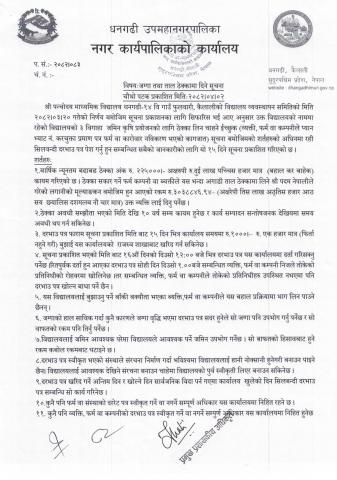 पन्चोदय माध्यमिक विद्यालय, धनगढी १४ बि गाउँ को जग्गा तथा ताल ठेक्कामा दिने सम्बन्धी सूचना [चौथो पटक प्रकाशित]
