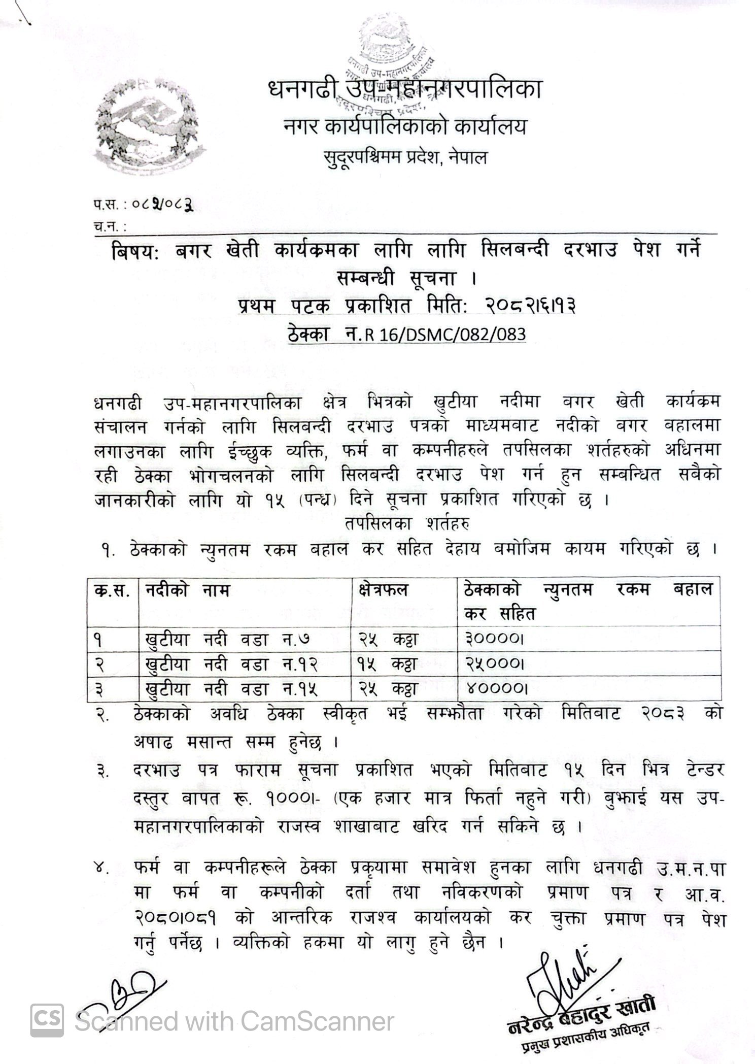 » बगर खेती कार्यक्रमका लागि सिलबन्दी दरभाउ पेश गर्ने सम्बन्धी सूचना !