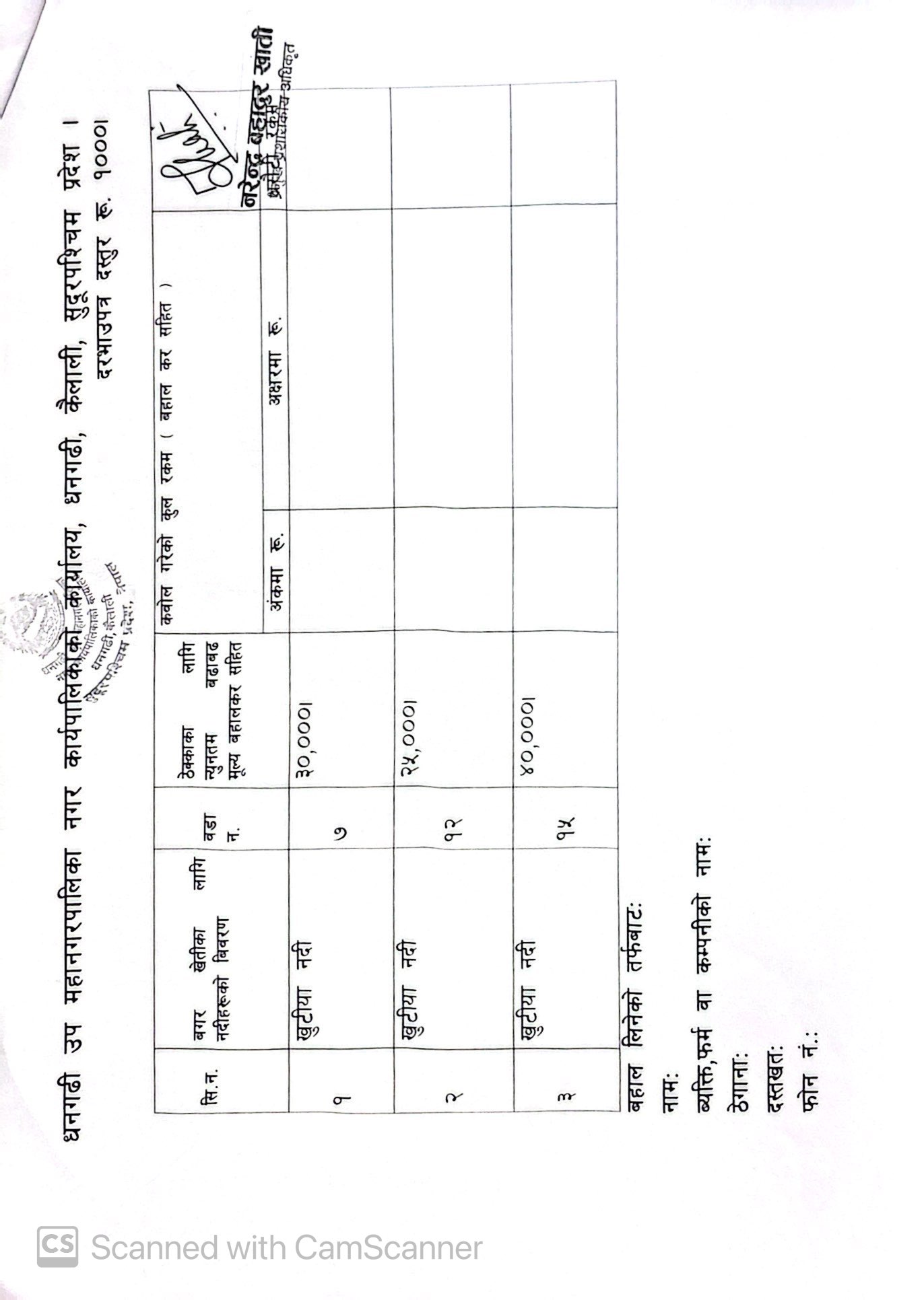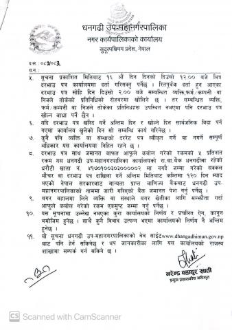 वडा नं ४ को कार्यालयको दररेट आव्हान सम्बन्धि सूचना