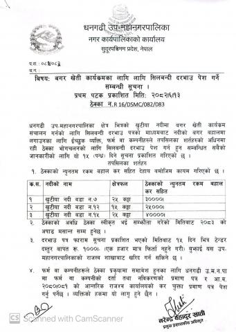 बगर खेती कार्यक्रमका लागि सिलबन्दी दरभाउ पेश गर्ने सम्बन्धी सूचना !