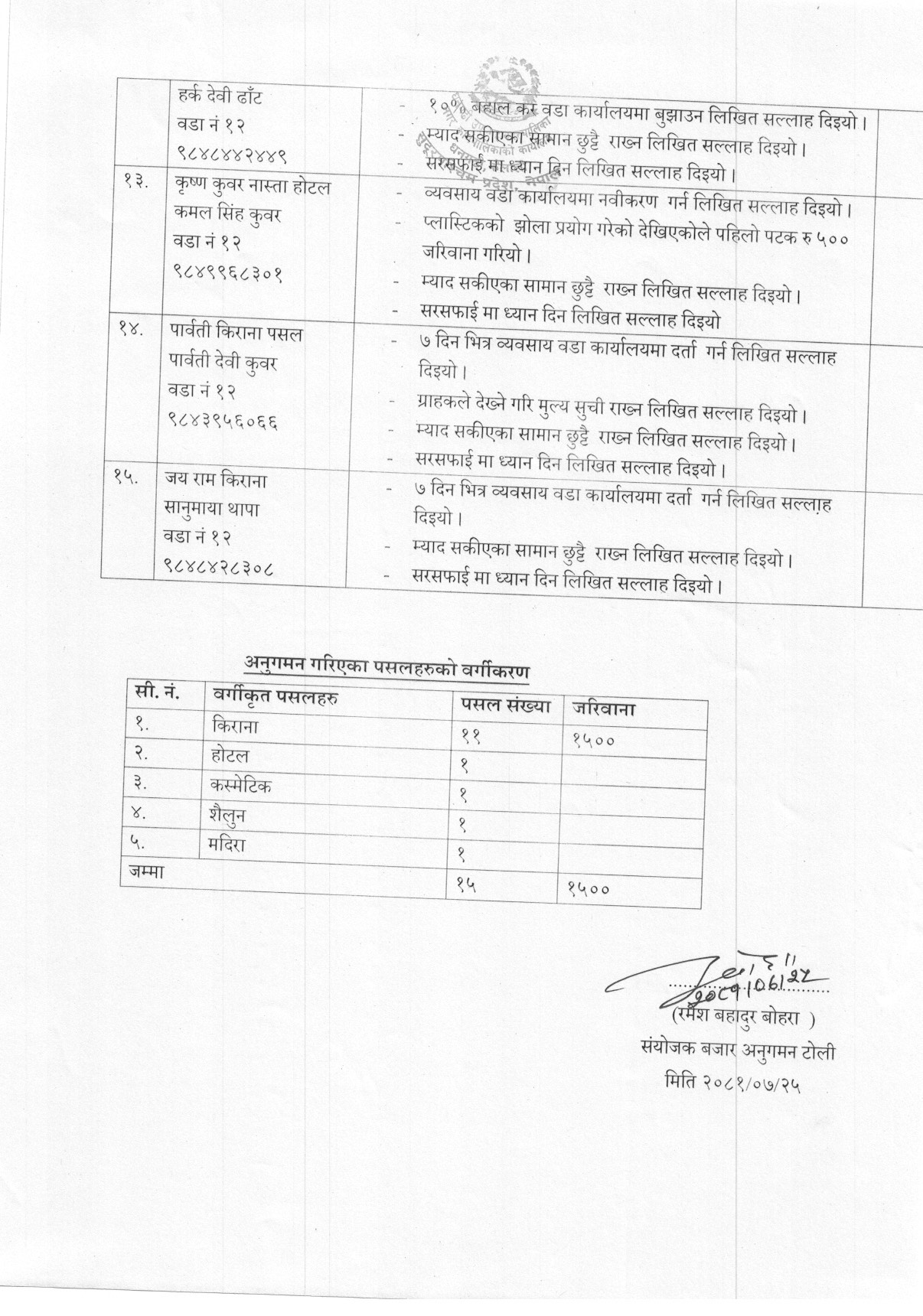मिति २०८१-०७-२५ गतेको बजार अनुगमन प्रतिबेदन