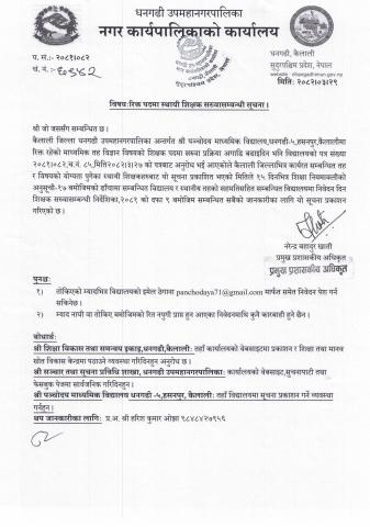 रिक्त पदमा स्थायी शिक्षक सरुवा सम्बन्धी सूचना